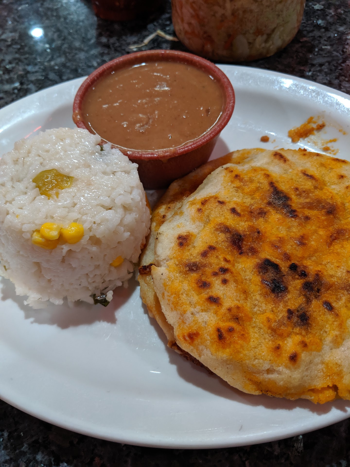 Read moreThe service is bad. It's slow and the servers aren't friendly. Only one was nice after our complaints. We waited almost an hour for our food. We asked a waiter twice when our food was going to come out, but they look at us for only half a second and spoke as they walked away. I don't know what is up with this place. We asked for the check since we wanted to eat somewhere else. But when my father went to the cashier to pay (for our drinks only), the lady told him that our food would be coming out shortly. It felt like they forced us to stay. We wanted to leave. I got the popusa de loroco. It was delicious! My mother didnt like the popusa de chorizo whatsoever. We won't come back ever. I certainly won't recommend this place to others. There are other places in OC that serve delicious...