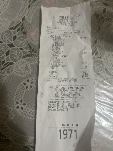 Read moreI would give a 0 if it were possible. To start off Jason was incredibly unprofessional, but at the end of the day it’s pollo loco so it’s not like we were there for the service. They charged us for mango habanero chicken but didn’t even add the sauce. A simple task. When we called to complain about the mistake, the person on the phone was once again very rude. They then proceeded to not only accuse us of saying “rude things” ( which they never even clarified what they believed that we “said”) on the intercom but also threatened to not serve us again if we “said something” again and hung up very rudely before even letting us finish or get any of her information. The woman at the window (whom I forgot to add also slammed the window on us after asking for water) was around 40, short, with black hair and light brown skin. I’m not sure if this was the same individual on the phone but they should also be mentioned just in case. If you take a quick glance at the reviews you will see this is not an isolated incident. Corporate needs to step in and put these guys in check!