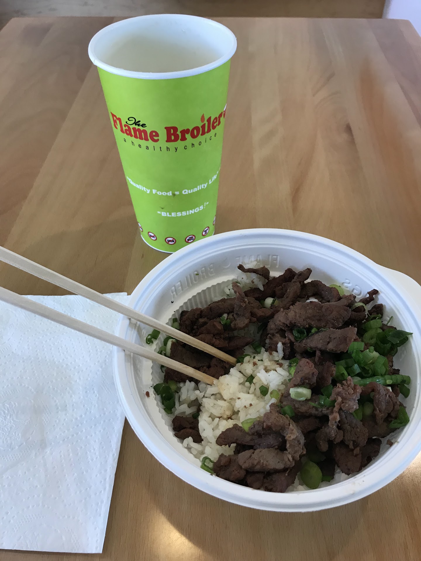 I love Flame Broiler, and frequent the brand enough that i usually know how much my same order will be within a few pennies. I have been to this location three time now and could not seem to figure out what was different about it both times. I finally figured out that this is a corporate location, and acts as a training facility for new employees to the franchise. Its oddly located in a mixed use office/retail location which took me a minute to find the first time. There is also a flame broiler corporate office in the same center, so make sure your at the correct restaurant location. They literally weigh on a scale the amount of meat they give you each time. So of course the portion control is always the same, but I'm always longing for a little more. They are often training new employees, which has been fine. I'm just glad those people are getting jobs. But the scale really annoys me. I may frequent an independently owned franchise...