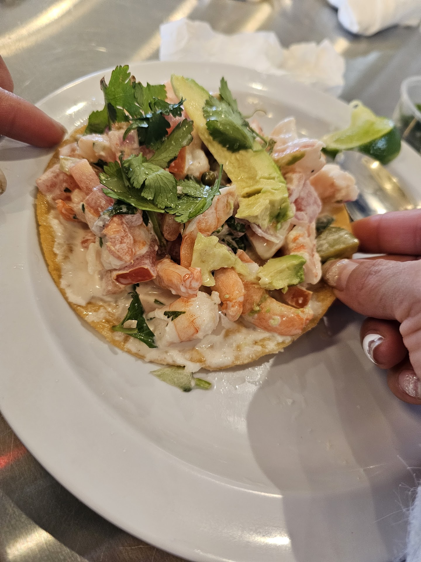 Let's start with the food. You can tell that the quality of the ingredients is low based s off the pricing. Spoiler! Anyone offering you shrimp ceviche for less than $10 should be a major red flag. My wife ordered it and as you can see from the picture it's basically mayonnaise salad with a few pieces of shrimp sprinkled on top.