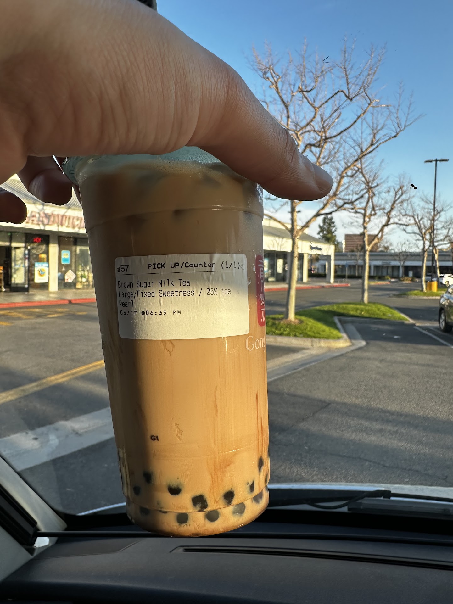 Brown Sugar Milk Tea Black Tea w/ Boba (Large). I wanted light ice (25%) and to have it shaken to chill the drink vs being at...