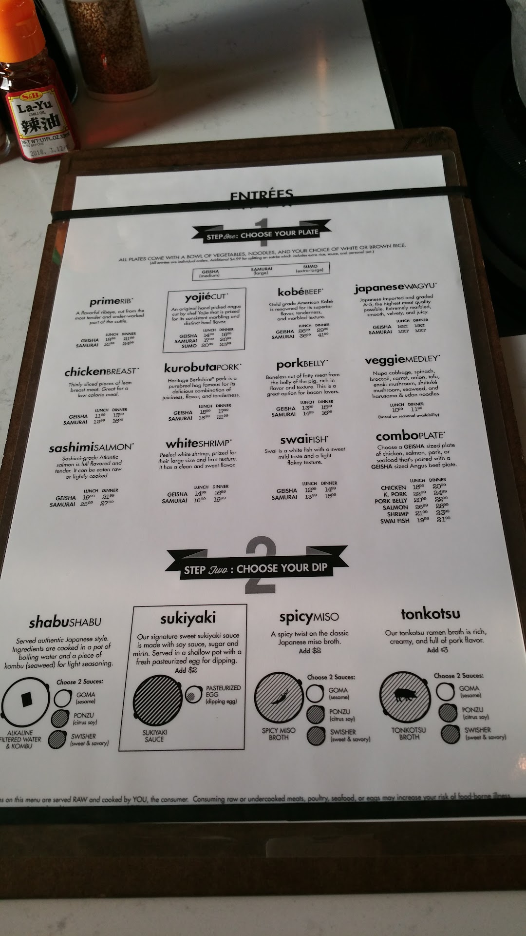 We wanted to try the basic meat with their shabu shabu basic broth. So we ordered the large (sumo) size yojie beef and their large (samurai) Swai fish (because I've never had swai fish with shabu before. They have a combo plate that's great for sharing (they do have a reasonable solit entree fee).