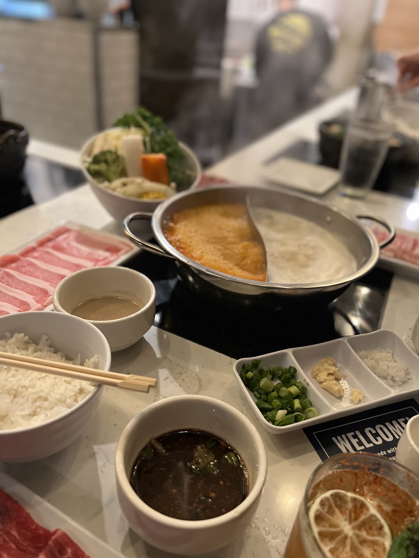 The meat was good, I'm glad it didn't come out with frozen slices (always wait for meat to thaw before cooking). The yojie beef wasn't too fatty. Swai fish was soft and tender (dont over cook in broth). Veggies and udon was basic like any other place. We opted for brown rice which was I understand can be hard in texture, but it was a really hard to swallow so i asked for a bowl of white rice, which was also under cook and a but hard. Work on the rice texture please!!