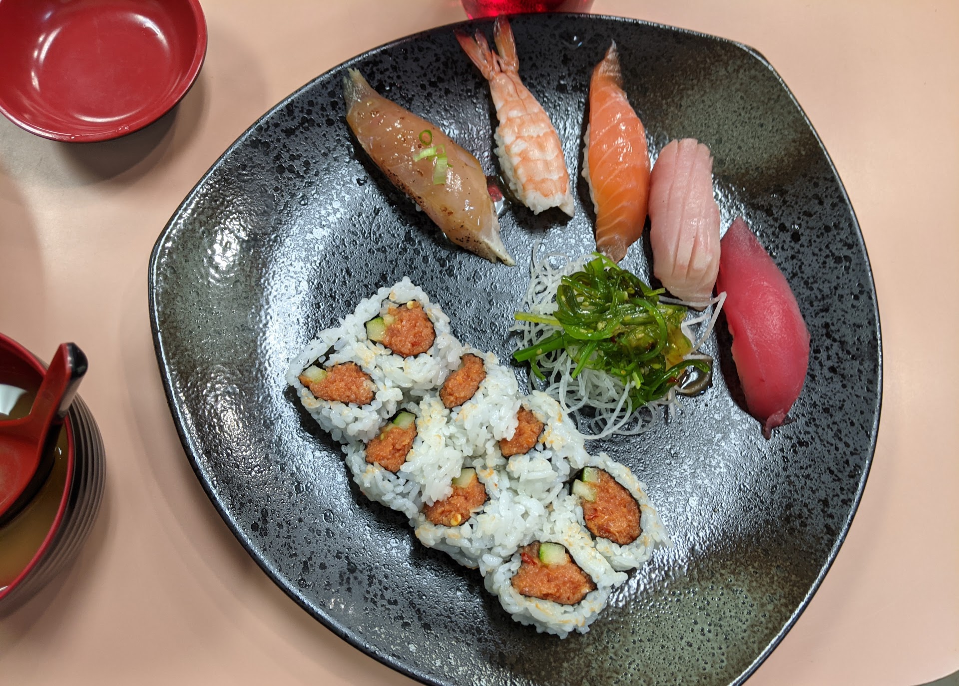 Read moreTruly the worst sushi me, and my wife have ever had. Too many red flags that we should have heeded. The place was empty when we arrived. The restaurant looked bleak from the outside and inside. We ordered a crunch roll, a dragon roll, a spicy albacore roll, miso soup, and two cokes. The wacked out looking server, placed two coke cans, with no cups of ice in front of us. We’re supposed to drink out of a can; classy. My wife asked for a cup with ice; she got one and I didn’t. The miso soup tasted like chicken broth, with two small, very hard pieces of tofu in it. The dragon roll had the texture of a slimy slug or an octopus tentacle. The crunch roll was extremely salty. The albacore was barely the best, out of the three rolls, but still subpar. Again, the place was empty, yet they let their phone ring, with an obnoxious loud bell, forever!! It rang for like three minutes. Adding to the already horrible ambiance of the place. We came because of the bogus 4.8 star...