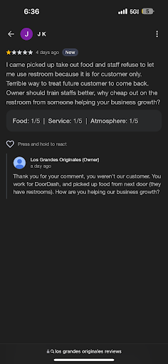 Updated cause i cant reply to owner cmt but the owner is also a lier. I came in pickup the food right with the staff and ask to use restroom, the blonde girl refused me. Now the owner lied and said i picked up food next door. So doordasher is not your customer? we brought business to your place, plus we can also be future customer. Instead of training your staff better, you decided to lied to...