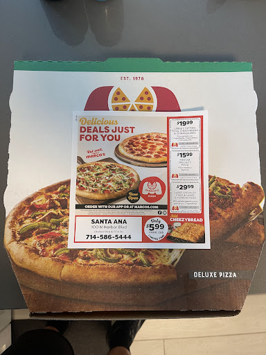 Ā Ā Ā Read moreBecame a fan of Marco's while living in Vegas. I was glad to see them open a store in Santa Ana. You will not find a better pizza for the price! They have a great rewards program also. Don't waste your money on Domino's, Pizza Hut, Papa John's or any of those places! They can't match the flavor or quality of Marco's. I have all 3 of those options within 2 miles of my place in Irvine and the day Marco's opened I drove 20min to SA because the pizza is that much better! Yes you can find better pizza for double if not triple the price. Other than that you're not...