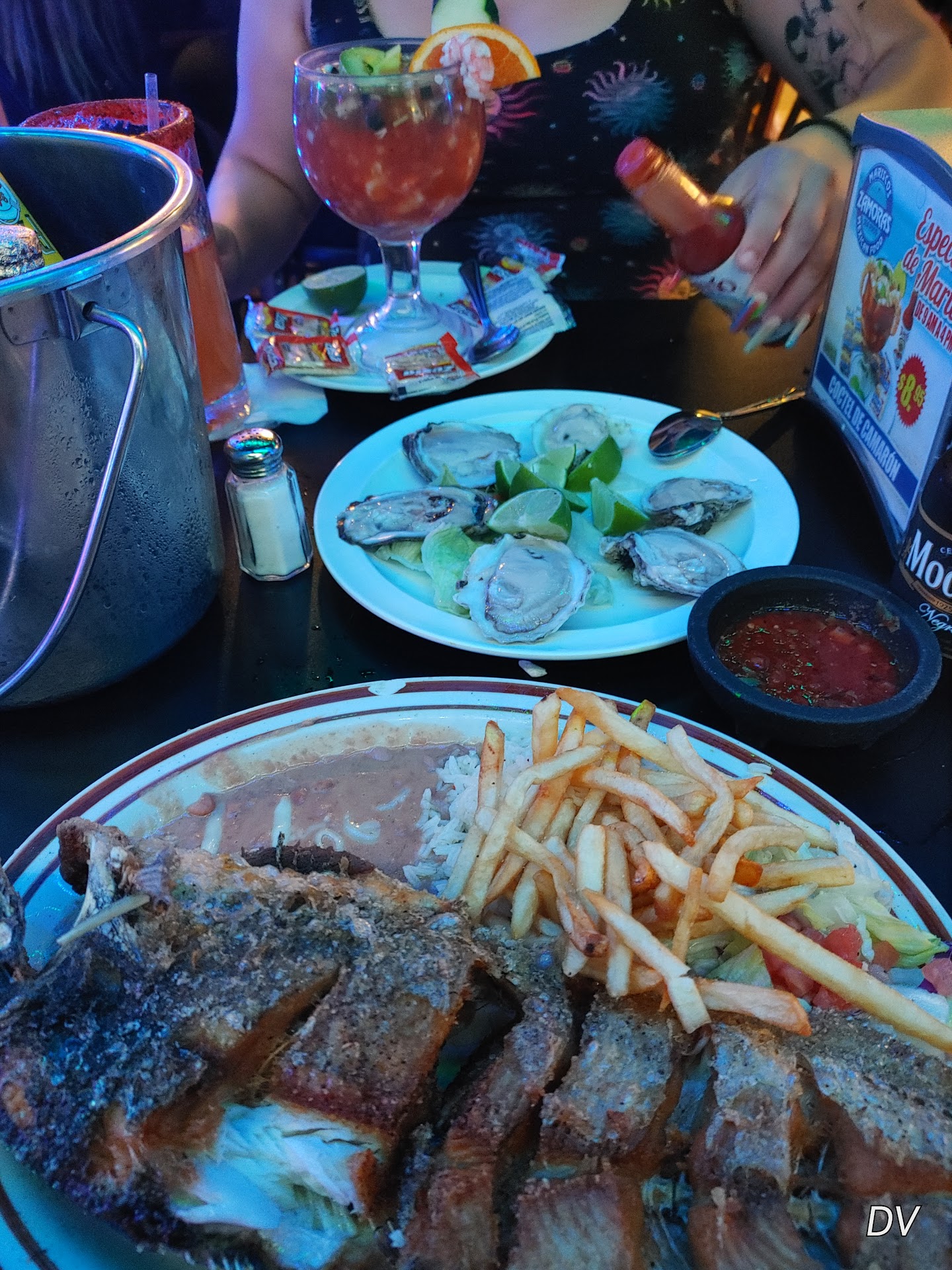Great marisquería spot i'm Santa Ana. Mariscos and Karaoke are always present every time I come. Y favorite dish here so far has been the molcajete mixto. Very flavorful, but they get stingy with their tortillas, they give you only 2 per order. The waitresses are always friendly and every now and then you have to grab their attention for help but are always willing to help. Great spot for karaoke and it's fun seeing a few of the regulars there sing. A bucket of beers are pretty cheap if you ask me. I've become a habitual consumer ever since I went in...