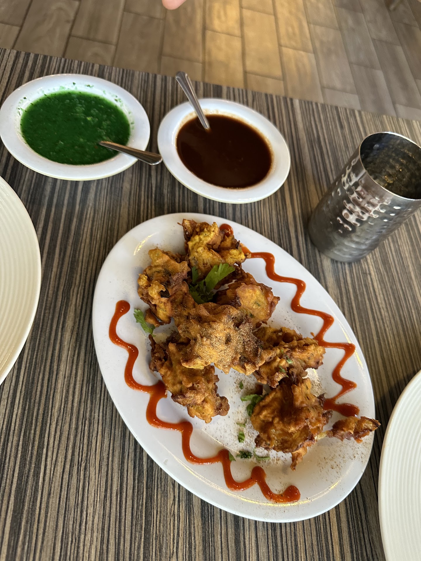 Pakoras- one of my favorite dishes!! This was so good. It was perfectly crisp on the outside and the inside vegetables were so tender and soft. This literally melts in your mouth and it’s so delicious and served hot. Also fantastic with the sauces served with it like green chutney.