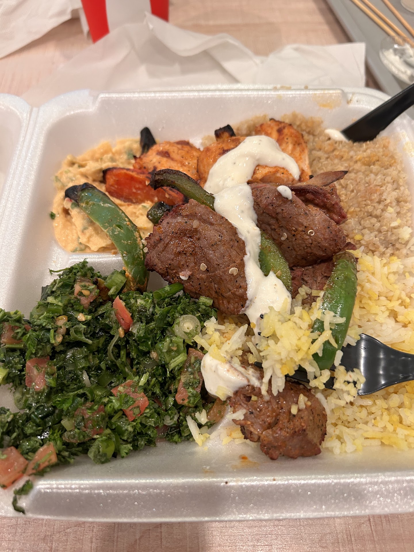 Ā Ā Ā Read moreI came to this place the first day it was opened. I was extremely Impressed. This is a family owned Restaurant. The food is extremely fresh and made to order. I ordered the chicken Kabob plate, with a side of Hummus and Grape leaves. The grape leaves were so soft. The Chicken was not dry at all hence being made to order and fresh. They also have white meat for the chicken kabobs. They had many options not only meat, but vegetarian. They have Gluten Free items as well as have items that are organic. Khaled was extremely helpful and polite. He helped explain everything and even let me try a few things. They accept cash or card. They also offer discount for first responders or military. I was contemplating sitting outside as they have outdoor area, but the inside was clean and well lit. Forgot to mention the desserts that they have. Lets just say sweet tooth. I definitely will be coming back here, and possibly try their Mediterranean bowl next time. Recommend this new hot spot for...
