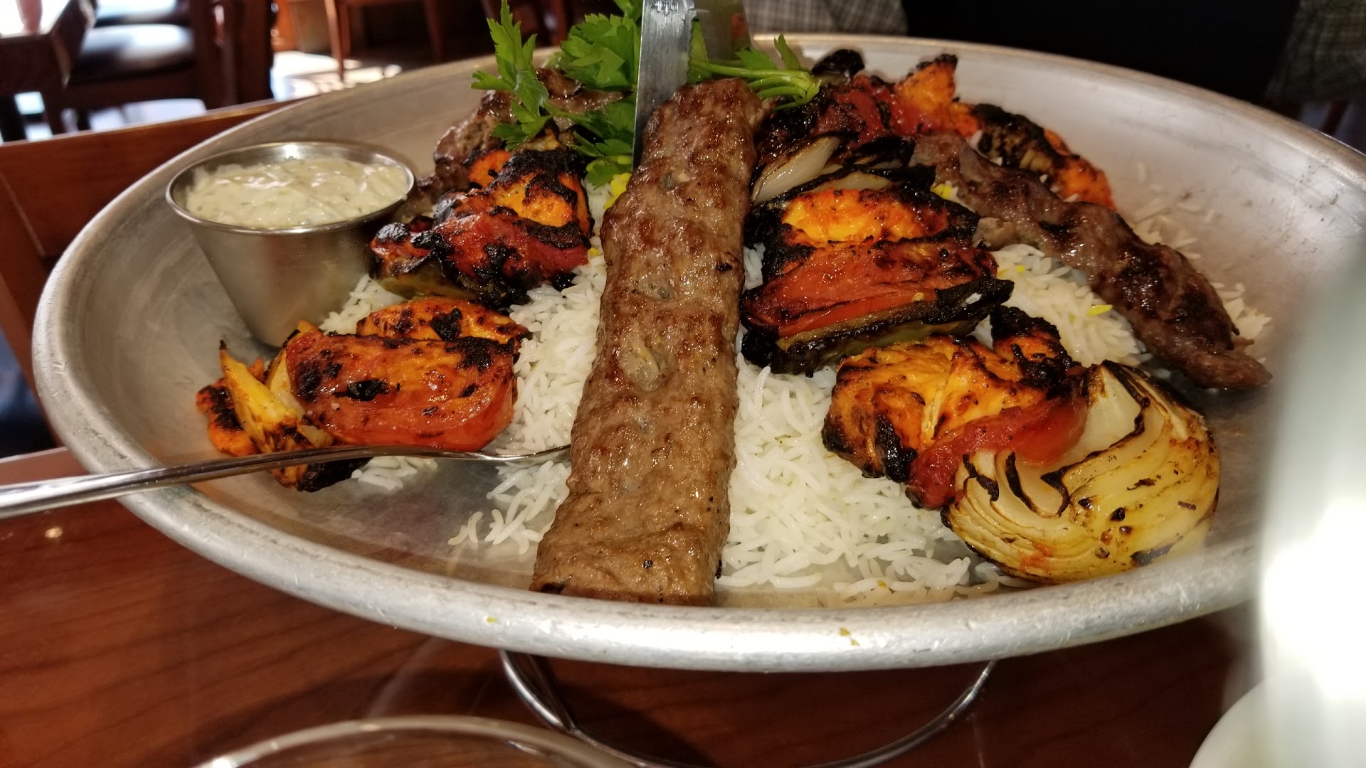 I've been eating at this restaurant for years and have never had any issues until today. I never eat anything on the menu other than the kabob plate with the romaine avocado salad. My salad came out and my avocado was brown. I tried the avocado and it was sour. This prompted me to flip it over wherein I then saw the inside of the avocado and it was black. Staff proceeded to bring me a replacement of what appeared to be the other half of this avocado as it was the same color brown. My boyfriend politely asked if they could just bring me a different avocado and not the other half of the original one.