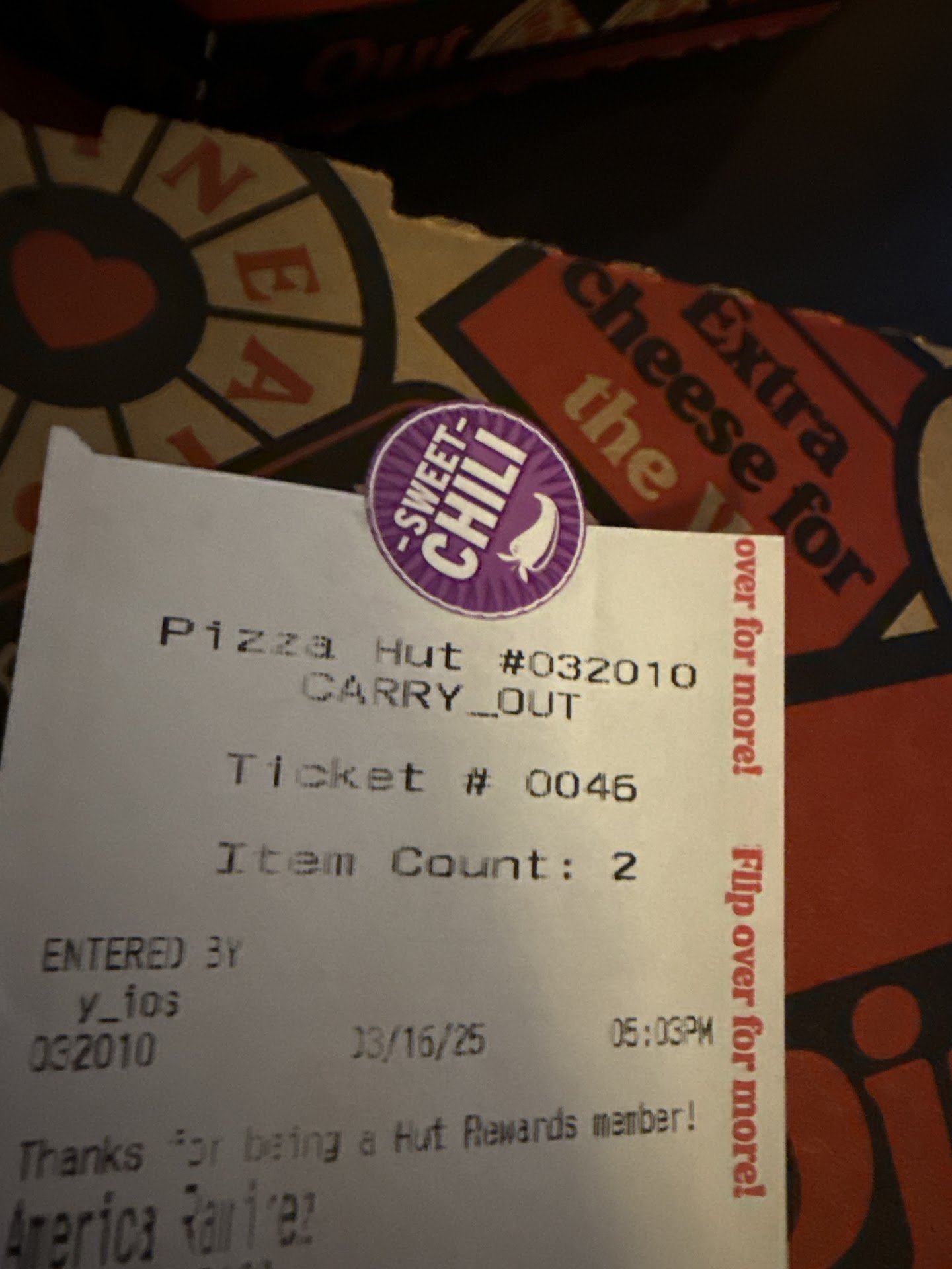 Read moreThe worst experience I have ever had, the manager is completely unprofessional. I called for delivery, they messed up my address then called me and told me after an hour and 20 minutes I was told that they can't deliver to me and they will give me store credit instead of even refunding me my money. I live a mile away from this location I told them that It was unacceptable and forced them to give me my food which took a total of 2 hours to arrive. I will be notifying corporate of this. They should of atleast offered me a refund. Nothing was done and left me with a very bad taste about the pizza Hut franchise. I can't believe they think it was okay for my family to starve for 2 hours and then tried to cancel my order. There was not even an...