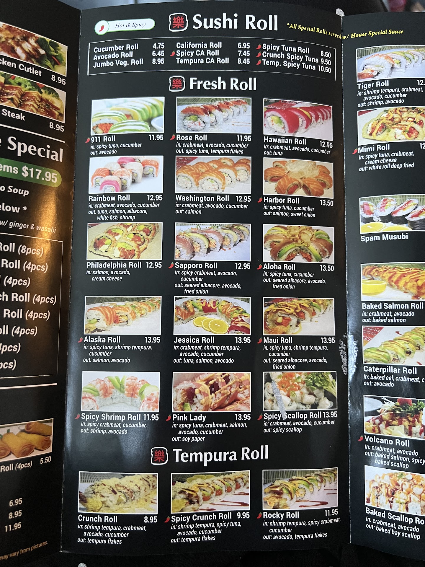 Fresh edamame $3.95 was a nice start. I liked that it had a naturally sweet taste. The BSCR Roll $13.95 and Baked Lobster Roll $15.95 were rich and delicious. The Sashimi Salad $12.95 was refreshing, and the Assorted Sashimi (12 pieces) $26.95 was fresh and well worth it. The Philly Tempura Roll $13.95 had great texture, and I really liked the Tonkotsu Ramen $13.95 which was warm and satisfying