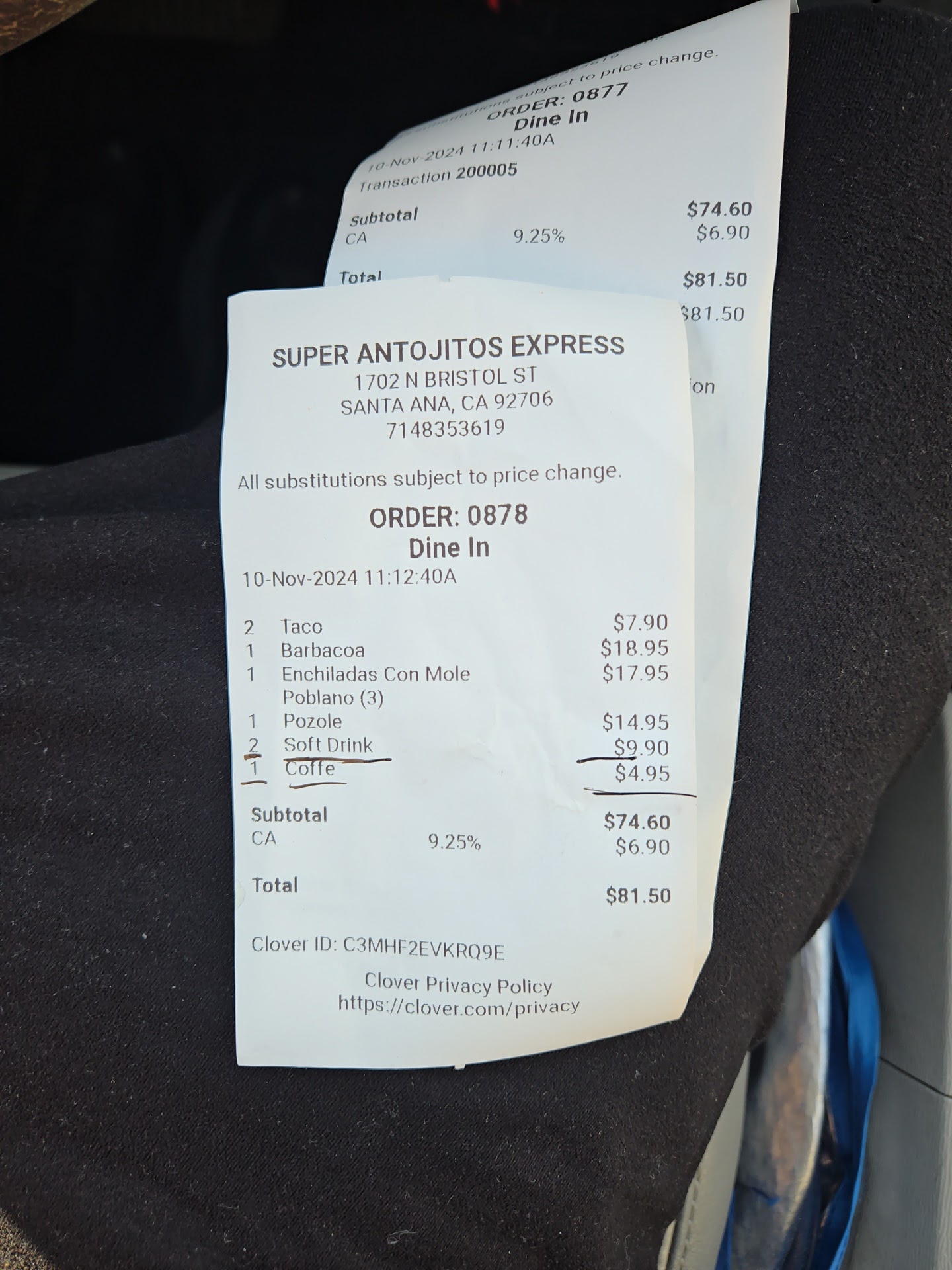 Ā Ā Ā Read moreSeriously the worst spot I been to in a minute the pozole u could tell was old and grainy thick and had no meat really they brought no tortillas and no oregano or crushed pepper I was confused too because it's not super antojitos it has the old sign and the inside looks like the old restaurant but it totally not that same place it antojitos express that's a whole different place the food is not the same the salsa they bring u with chips is water no flavor not spicy so I asked for a hotter one and they brought me some warm salsa that tasted like it was canned not spicy either I was really sad they brought me chopped up habaneros so I added them to the salsa with lime and salt and onion to try to fix it but it wasn't the same alot better tho it just wasn't the Super A's...