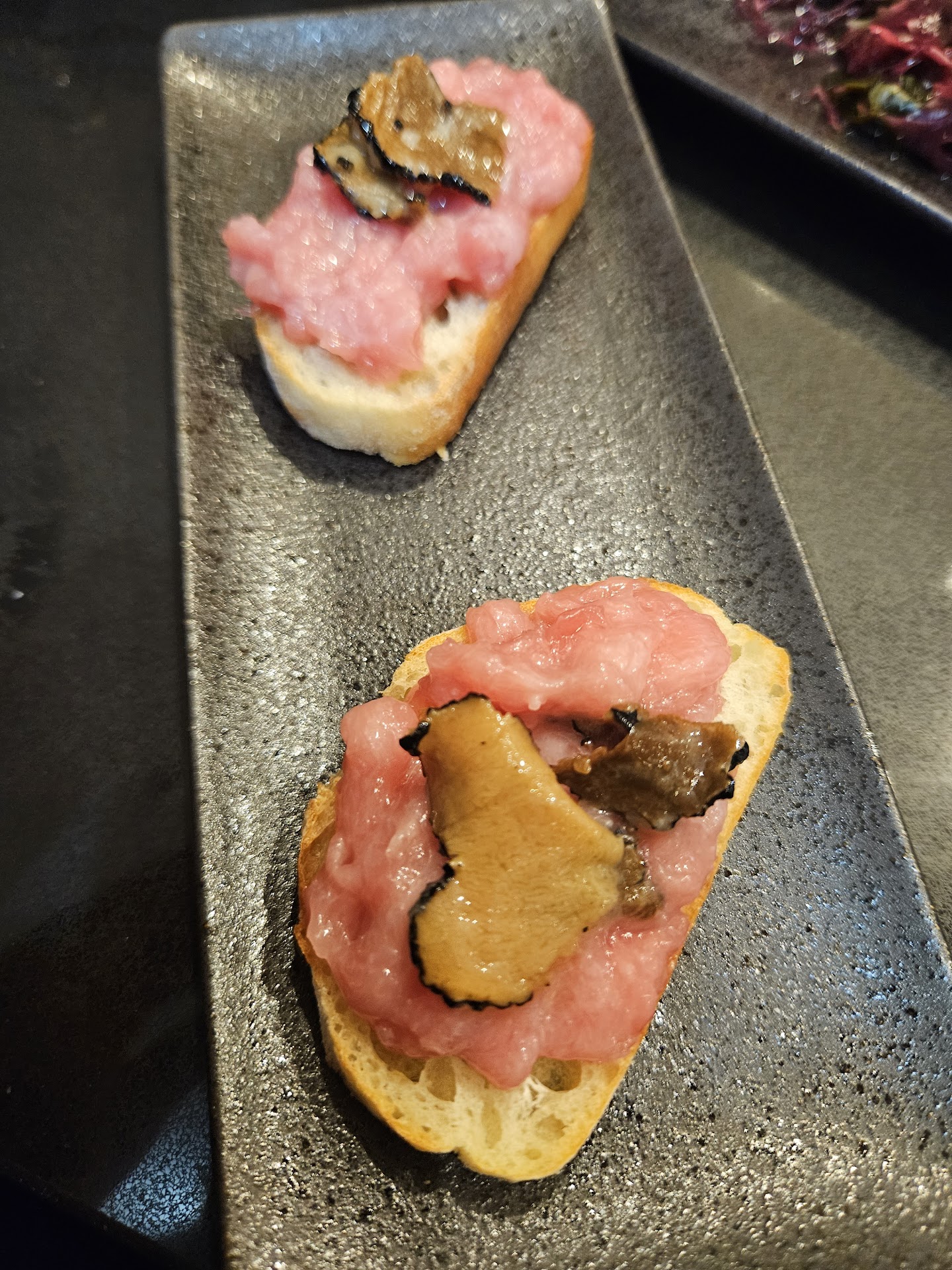 Red Snapper: This was a special listed on the board. The fish had a light, smoky taste and was really delicious. Iād definitely order this again! Yellowtail: Delightful with a rich umami flavor. Cherry Salmon: Topped with truffle oil and tobiko. Excellent and full of flavor. Bluefin Toro: Amazingāso buttery it melted in my mouth. Eel: Had a nice char and wasnāt dry. Very good. Toro Toro Truffle Crostini: 10/10 umamiāsuperb! The service was excellent. I was seated right away at the bar, and the sushi chefs were very friendly. You could tell they were passionate about their craft, which really enhanced the atmosphere of the restaurant. It felt like a special place, not just another neighborhood sushi spot.