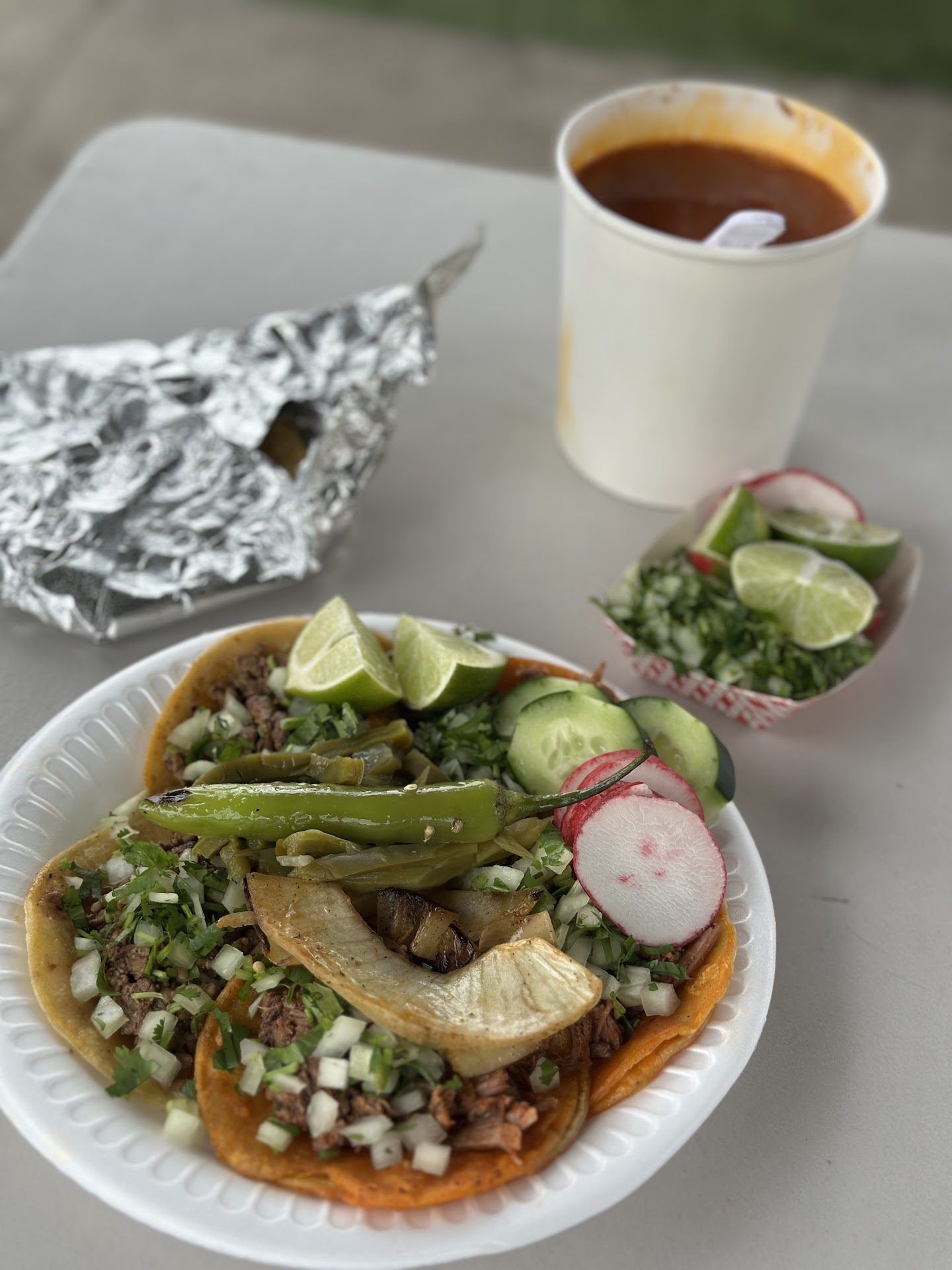 Read moreFirst time here and wont be my last. Food is very delicious and well portioned and priced, extremely affordable and will not disappoint. They are very generous with condiments my order came with carmelized onions, jalapeño pepper, nopales, horse radish slices, and cucumber to cool the pallet after their well spiced salsas. This is an honest food truck that does not over charge for their...