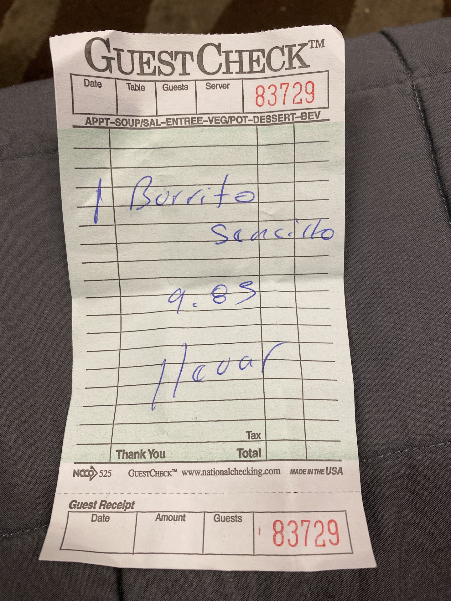 Read moreIf I could give them a zero I would. I buy a burrito with beans,rice,onion and cilantro all the time and they charge me a different price every week first it was $5-6 then $7 then 2 weeks ago $8 and today $9.85 really for a bean and rice burrito almost $10 Tacos Gavilan have the exact same burrito for $4.99 i rather pay to get it delivered then to get ripped off I'm not buying from this place again. Ask for the prices every time you order the same item so you don't...