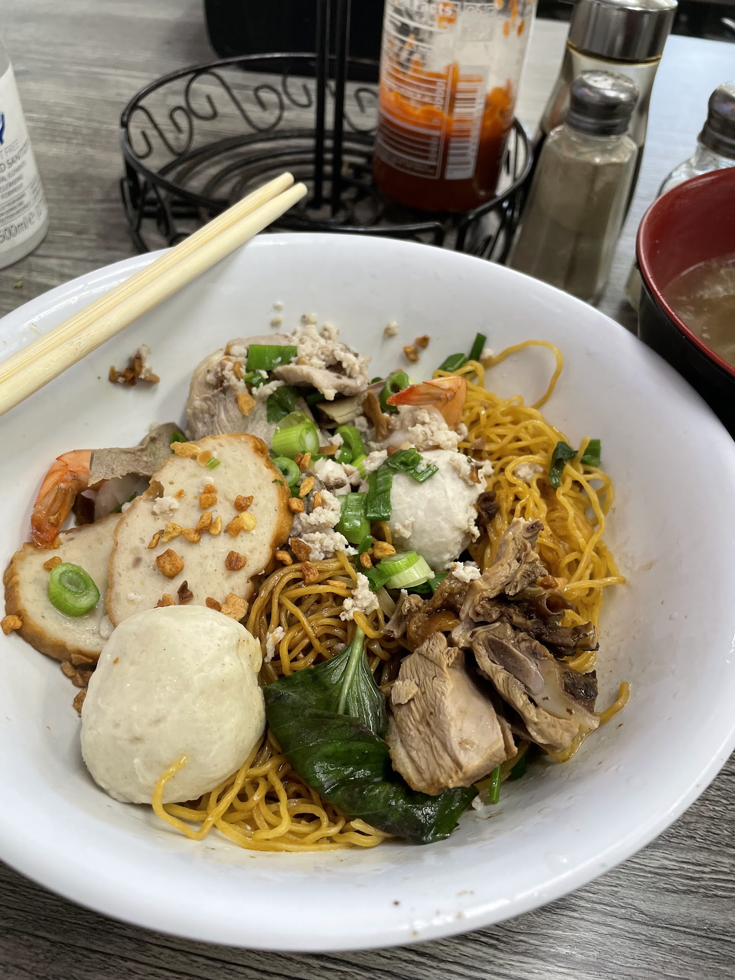 Their broth is exceptionally savory with deep, comforting flavors, balancing between savory and sweet, but leans a bit more sweet which my wife and I personally enjoy. The bowls are loaded with fixings like wonton, chicken, duck, meatballs, etc.