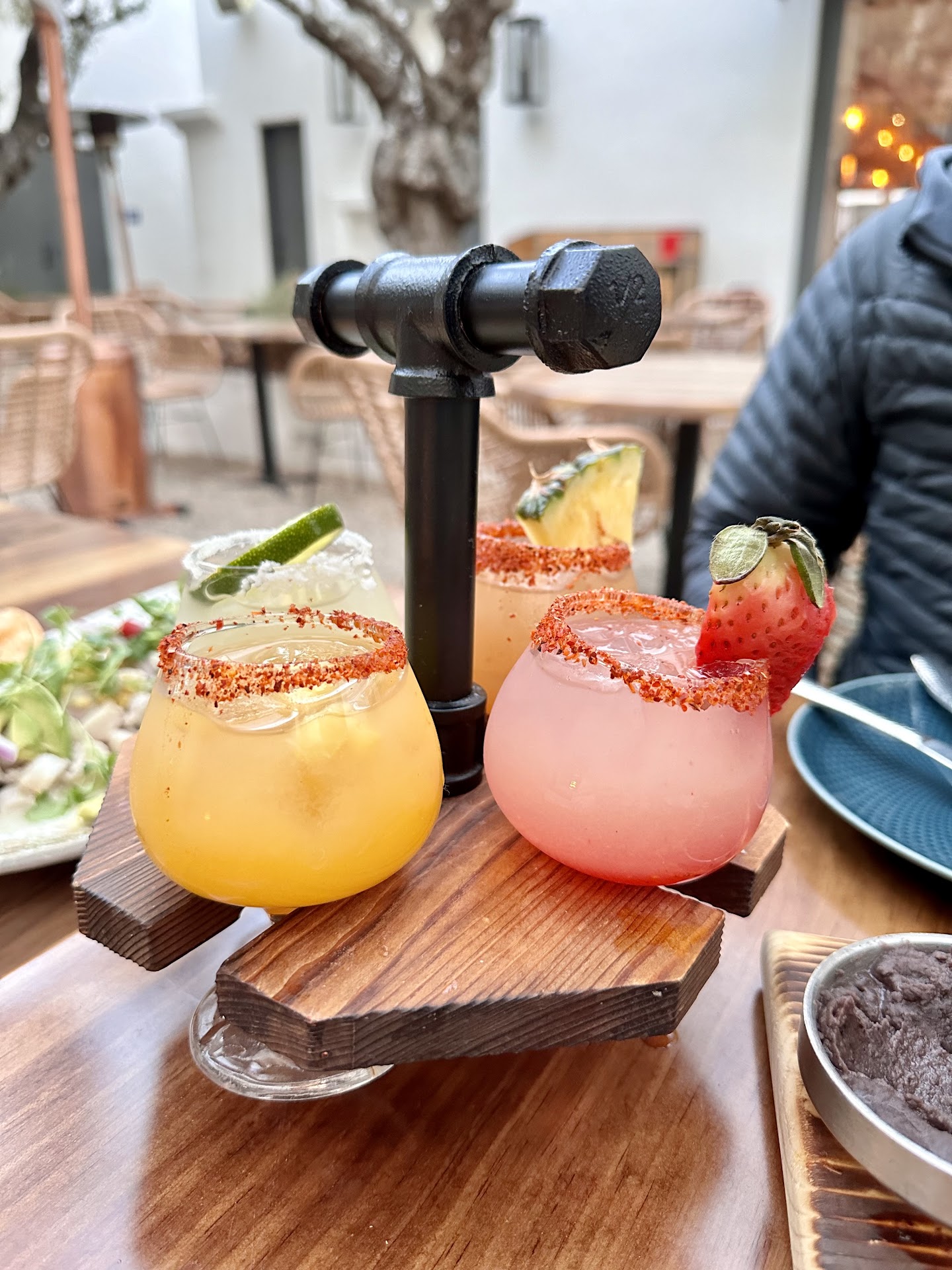 We went for dinner with another couple and found the atmosphere absolutely delightful. It was a warm Santa Barbara winter evening and the lights in the courtyard as well as the paneling in the covered dining area were magical. The wait staff was very pleasant and the carnitas were quite good. The prices were surprisingly low with many entrees between 20 and $30.