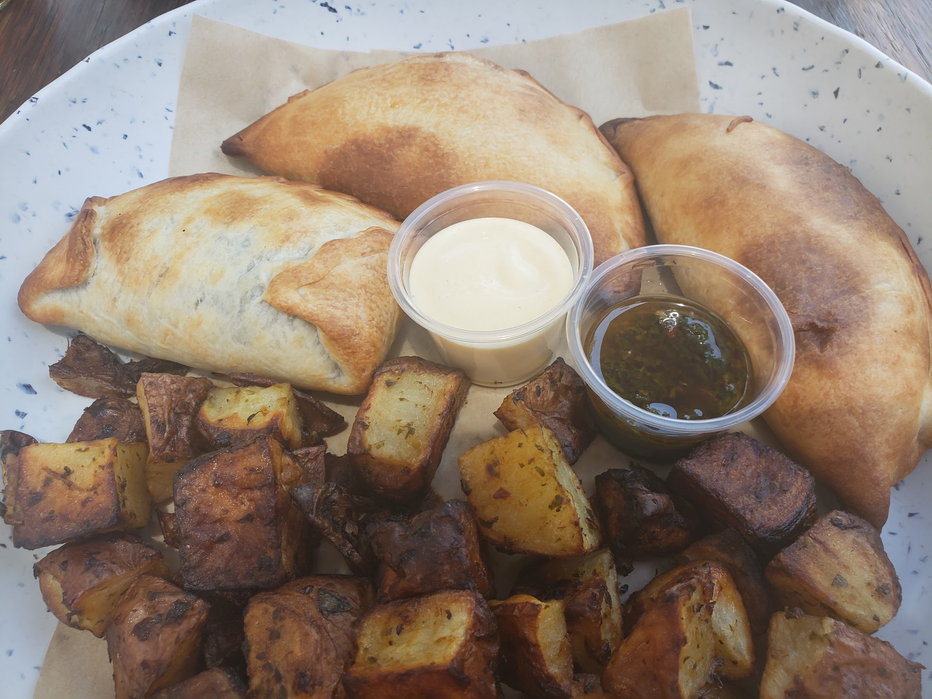 Read moreTHE BEST EMPANADAS ! After our almost one week vacation in Cambria my wife and I decided to make a stopover in Santa Barbara on the way home. A good reason to have dinner and then breakfast at two of our fav spots. Soon after getting settled in our casita at The Eagle Inn we headed straight here to buy some delicious Empanadas.....the best Empanadas we have ever enjoyed ! No problem scoring a parking spot on their small private lot at around 6.30pm. A very pleasant cashier named Florencia helped us with our dinner order at the service counter. We both ordered COMBOS...2 Empanadas + side of choice and 3 Empanadas + side of choice. My wife chose 1 x Pollo ( Pulled free-range Mary's chicken, onions and bell peppers ), 1 x Serrano ( Prosciutto ham, mozzarella, garlic, wild arugula ) and a side of Chimi Papas ( Chimichurri oven roasted potatoes, spices, topped with aioli sauce ). I selected 1 x Carne ( Sunfed Ranch grass-fed ground beef, onions, bell peppers, green olives and free-range hard-boiled egg ), 1 x Serrano, 1 x Hongas ( Crimini mushrooms, organic spinach, caramelized red onions, mozzarella ) and a side of Chimi Papas. On any other day in warmer weather we probably would have dined here but it was getting late and the weather was pretty lousy. PRETTY QUICK ! There were a couple of walk-in pickups while we waited but apart from that it was pretty quiet. Florencia neatly packed our dinner order into take-out boxes and placed them on the counter. We paid and headed back to home base....The Eagle Inn. By 7pm we had it all ready to eat on the little table in our courtyard. Of course I brought my own beer to enjoy with dinner. WHAT CAN I SAY ! When you buy the best Empanadas you can't go wrong. I personally loved the Carne the best and the Serrano is always a winner but trust me they are all great. The delicious Chimi Papas with the provided side sauces tasted fabulous. VERY...