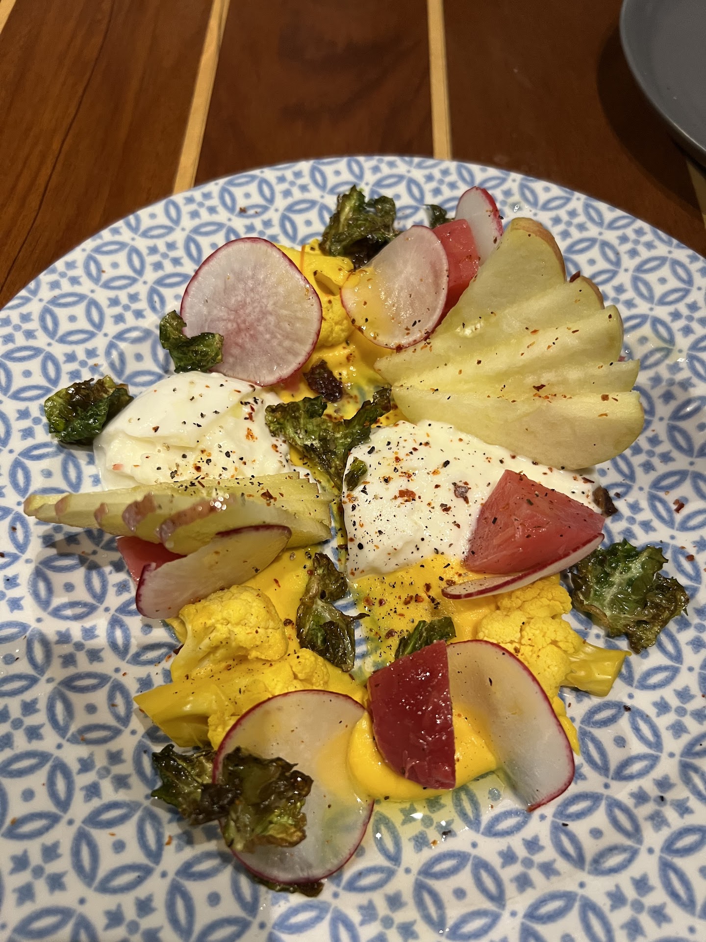 Focaccia – Served with basil oil, onion & caciocavallo. Delicious, warm, and flavorful. 9/10. Mojo Jojo Cocktail – Spicy passion fruit tequila, cream of coconut, citrus. Flavorful, but very spicy—I’m a wuss when it comes to heat, so for Tajín lovers, this would be a 10/10. For me? 7/10 (purely personal preference). Carrots – Served with baba ganoush, saffron cauliflower, dukka, and golden raisins. Unique, well-balanced, and had a tangy kick that added to the complexity of flavors. 8/10. Costolette (1/2 Rack of Baby Back Ribs) – Smoked & slow-roasted, served with giardiniera. 10/10! The meat fell off the bone, incredibly tender, and had barely any fat—absolutely perfect. Spit-Roasted Chicken – Harissa, chermoula, olive, almonds, cauliflower. My husband devoured everything except the olives (which I happily took off his hands!). Crème Fraîche & Pistachio Cheesecake – 10/10. Smooth, creamy, and an absolute must-try. Gelato & Cappuccino – My husband said it was the best coffee he’s ever had—high praise from a coffee lover!