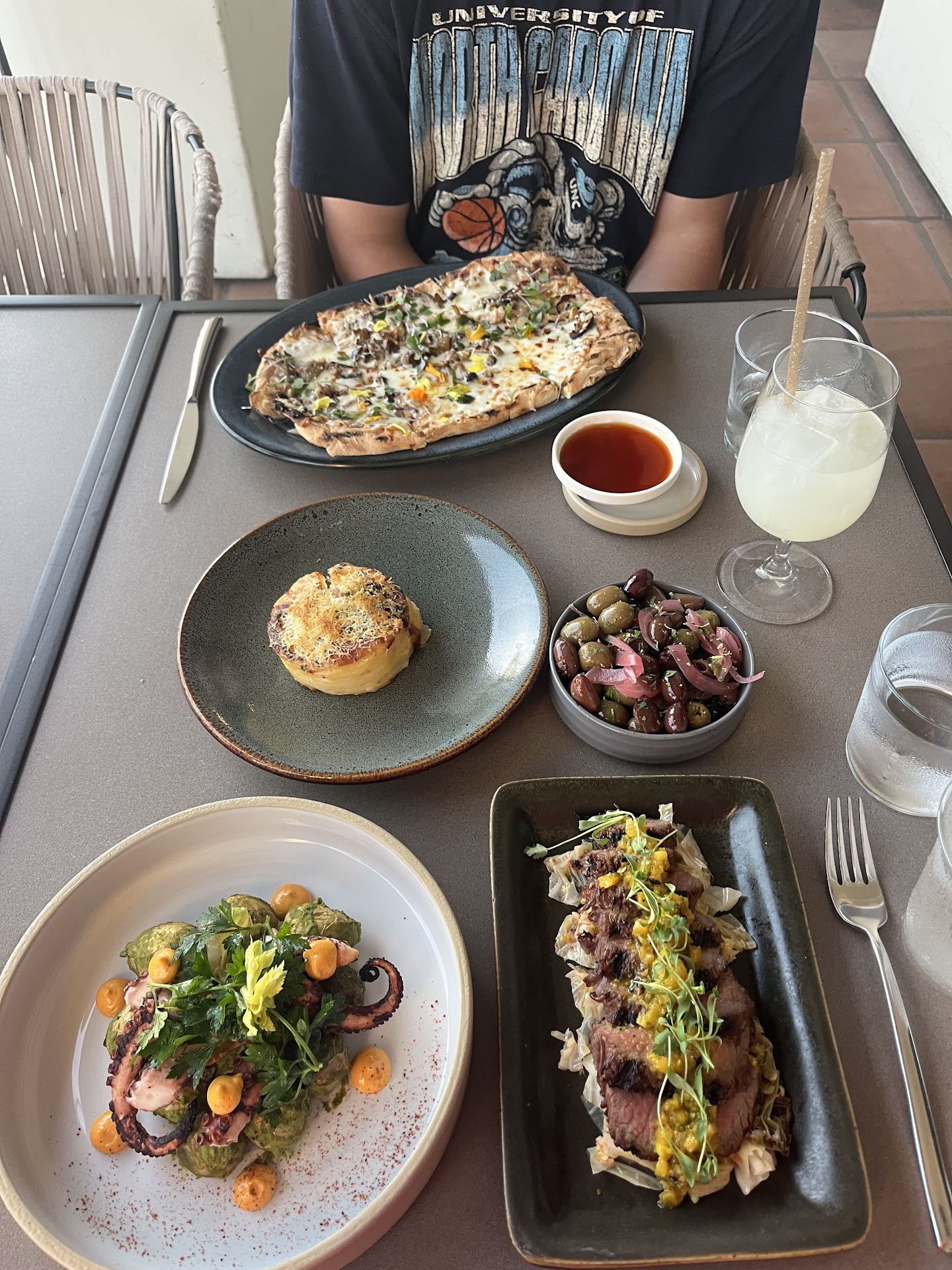 We ordered the mussels and the bread loaf as appetizers. The bread, although it looked amazing, was really bland. We had to order salt in order to have it taste like something. The mussels were overcooked and several of them were so badly overcooked that the meat was so shriveled it was nearly non-existent.