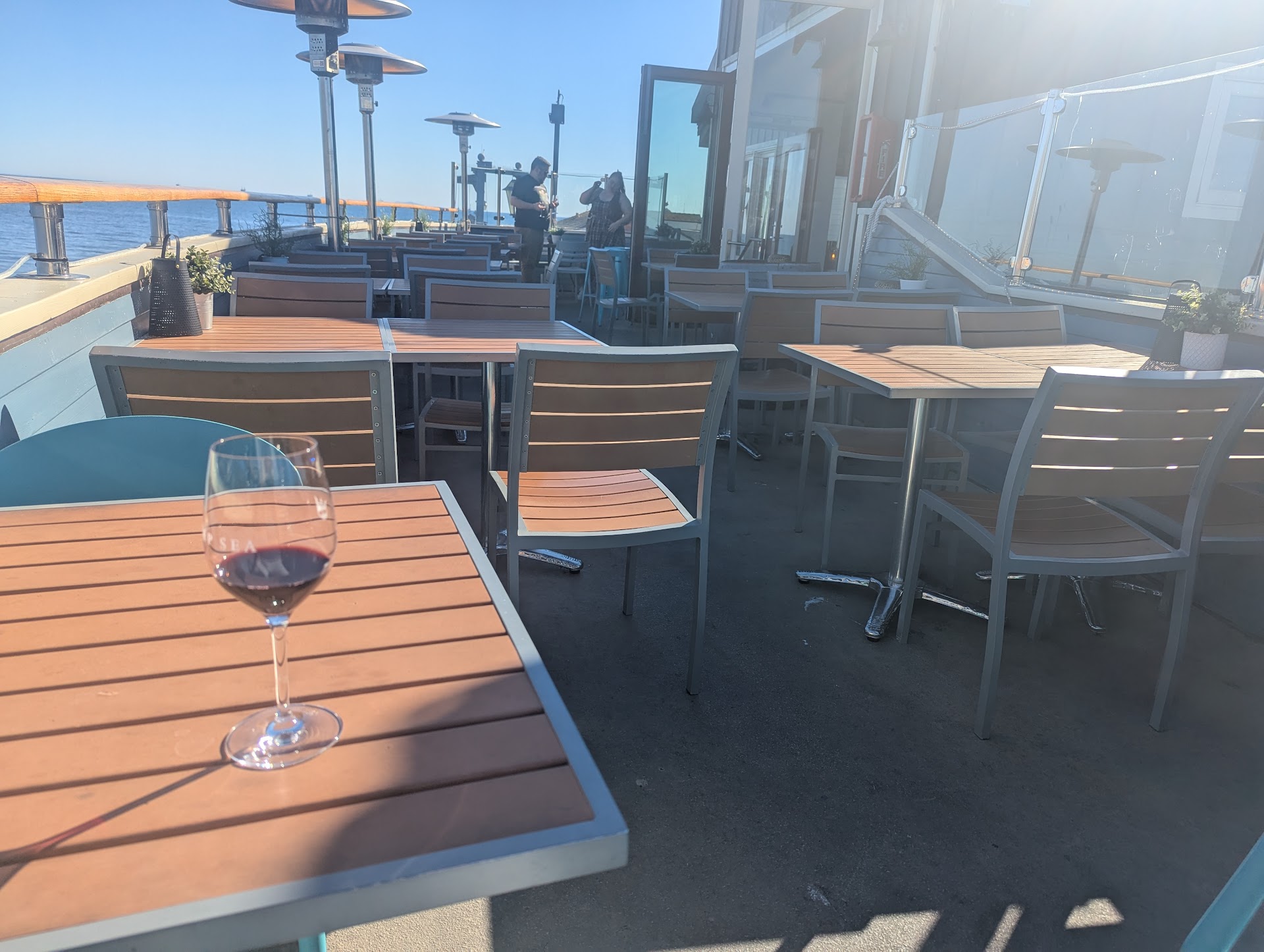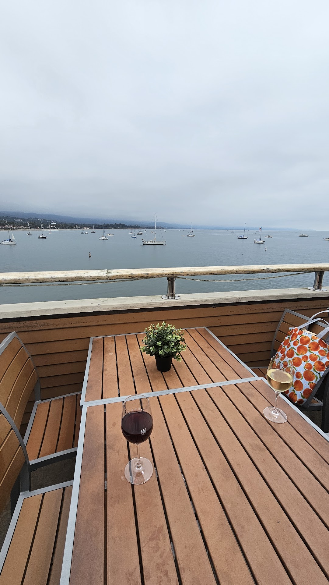 It was another lucky 75° Santa Barbara "winter" day and this wine bar is located right on Stearns Wharf... On the second floor, with an amazing, unobstructed view of the mountains and ocean. I went up to the counter to purchase the five flight red tasting, the girl friendly and bubbly, gave me a small, measured pour, 1oz? Very small. and told me to come back when I was ready for the next one. I didn't think anything of it and I went outside, had a sip, started to enjoy the beauty of the day. quickly realized, I'd need to go back inside number of times in order to continue to get the next glass... And the next... And the next... Interrupting the vibe. So I went I'm and asked the girl for all the times at once and she said... no
