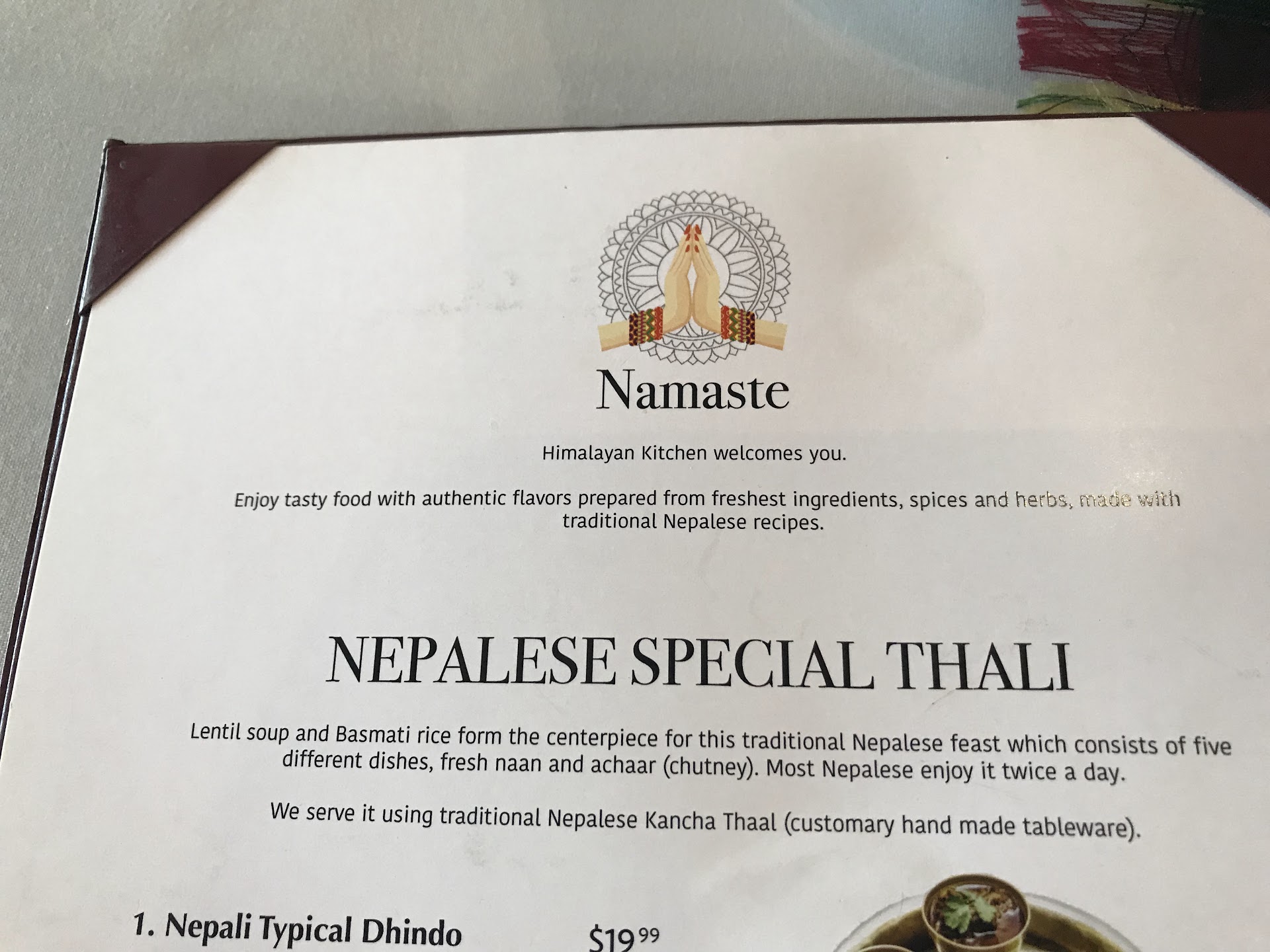 Read more"Finally something different!" Seems to be a good summary of the place. As a traveler and growing up in very multicultural city, I have been experienced a large variety of different cuisines, including the westernized equivalent. The Himalayan kitchen is a very nice change to the typical ethnic cuisines seen around most cities (e.g. Chinese, Italian, Greek, etc) and it has an extremely wide range of menu options. My waiter was extremely knowledgeable and helped me guide my choices including what I should pair my meal with. Having soy beans as an appetizer is a nice risk from the traditional soup/salad combo and I liked how I had the option to pair my meal with a variety of sites rather than the cookie-cutter set options. The food was tender, came out sizzling hot and very quickly. Service was fast and polite. Although I love the large menu options, some others may find this intimidating as it actually took me a bit of time to read through all the options. If I could recommend one thing, it would be to drop the "typical" Indian items on the menu and dedicate more to the Himalayan theme, but despite that, I was sufficiently satisfied. Keep on cooking...