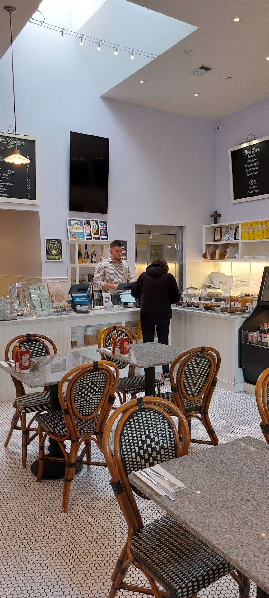 Read moreMy friend was visiting from out of State. It was her last day here, we decided to go to breakfast. The Lilac Patisserie was number 1 on our list. The reviews were good and the "word" around town said it was a treat not to be missed! We got there when they opened. We ordered, were given a number and we sat down to wait. My friend ordered Eggs Benedict, and I had French Toast with a side of Applewood Smoked Bacon. We had coffee with cream. My French Toast came with sweet, tasty strawberries & blueberries. There was real maple syrup served warm. My Toast was Gluten Free which was a big selling point for me. Our coffee came in individual porcelain pour pots and a small glass container of cream. Everything tasted great! The staff was warm and friendly. Everything was served with a smile, and it all looked (and smelled) awesome. The restaurant itself was so pretty and clean. The inside is painted a light lavender color with white touches. The floor had that tile called "Penny Tiles". There are high ceilings and lots of glass. They have lots of delicious-looking cakes, and other baked goods made right on the premises. Be aware though, that not everything on the menu is offered daily. The baked good will fluctuate, as there isn't enough room for all of it. You may want to check out their website for specific cakes and order them ahead of time. We parked in the public lot behind the restaurant on Figueroa. If you are lucky enough to grab street parking, go for it. The...