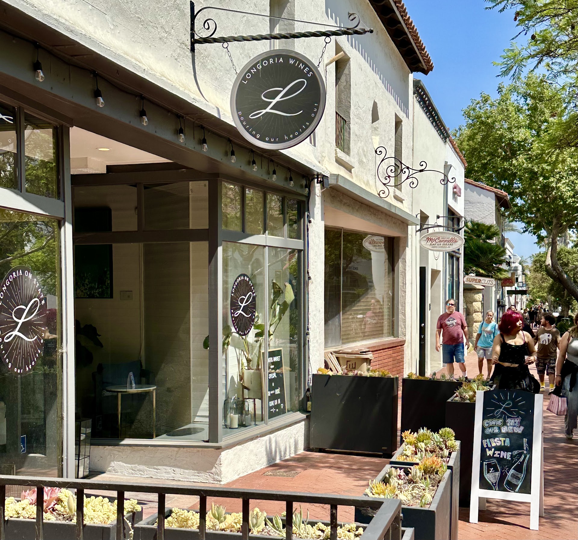 Longoria is a beautiful spot for some yummy wine tasting!! They have indoor, patio and people watching seating! Located on State Street a few doors down from McConnell's Ice Cream.