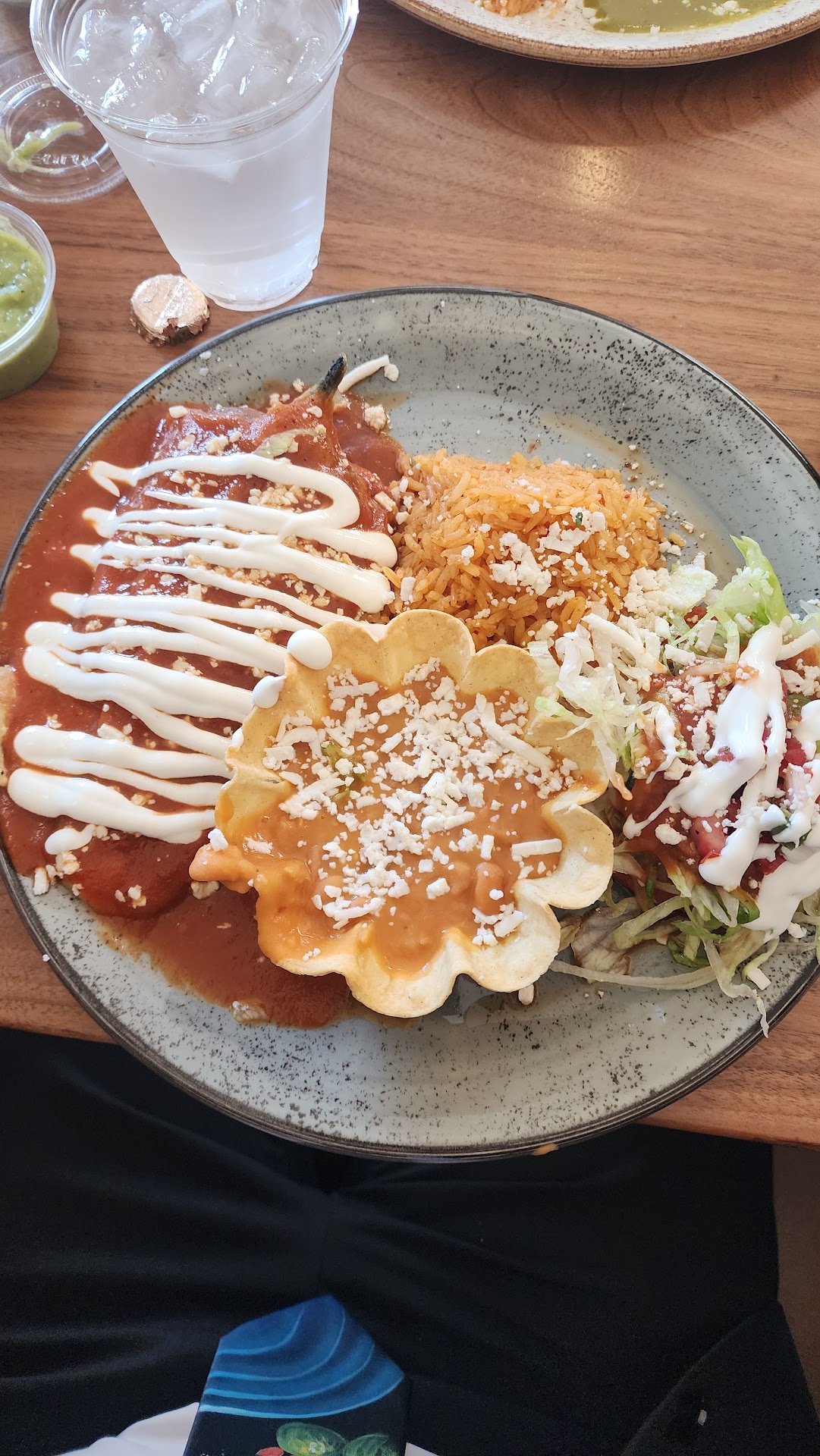 The food was good but not special, (especially compared to la super ricas handmade tortillas down the street). I ordered the combo plate with Chile relleno and vegetarian enchilada with salsa Verde. And if I hadn't been starving after a long day of hiking, hot springs and dog beaching the food would've probably been even less impressive. Chille relleno tasted chewy and soggy at the same time. Enchilada was better but had way too much cheese but also good amount of veggies. Their rice and beans are yum.