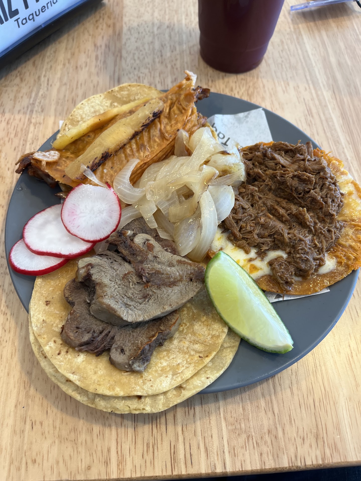 Wow, this place has become my favorite taqueria in Santa Barbara since they have tacos al pastor that taste just like those in Mexico City! The meat is perfectly marinated, it has the typical slice of pineapple on top, tortillas are good, and salsas are great! Another plus is that prices are good given the quality and the amount of meat that you get. I usually feel good ordering just 2 tacos because they come with two tortillas and a lot of meat. I would order 3 if you are very hungry. The tacos with cheese are pretty filling. I loved the plain taco al pastor, mulita de pastor (with melted cheese and guacamole), and costra de pastor (with crunchy cheese). I’ve also tried the steak taco and it’s good. The shrimp pastor taco could have been better. So I would recommend sticking with pastor. I’m really excited because for the first time I was able to show the flavor of pastor to my vegan friends. They have beyond pastor and a vegan version of other types of meat too, but my vegan friends also think pastor is the best. Another thing that gives this place more points is that it’s decorations and music are cool so it’s not your typical neighborhood taqueria. This looks like a taqueria in La Condesa or La Roma (trendy neighborhoods in Mexico City). They also have great drinks like passion fruit agua fresca (non-alcoholic), margaritas, and beer. They even have a great dessert (pan de elote)! I’ve already been here four times since I...