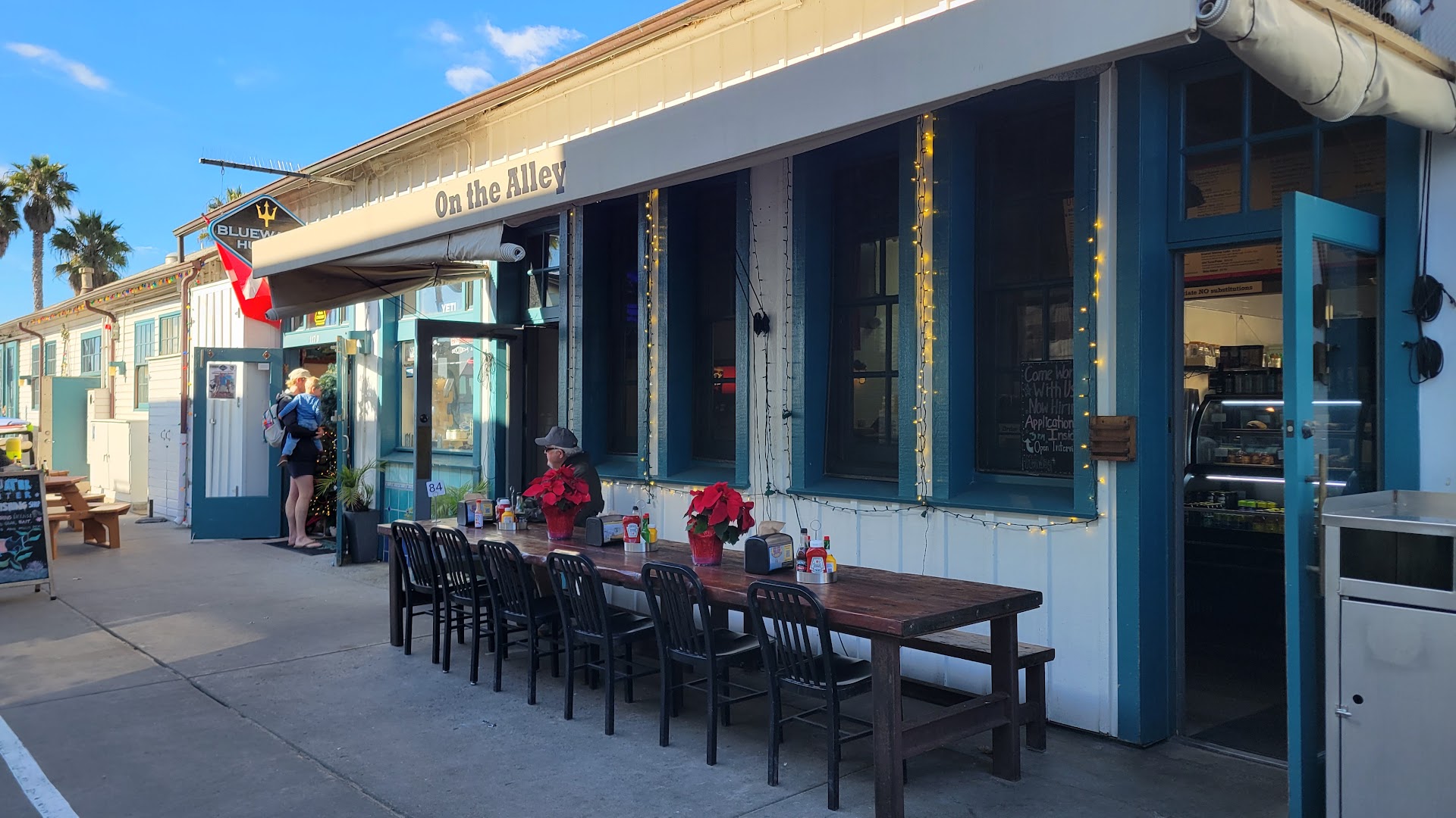 Read moreOn the Alley is just that, a counter, grill and soda machine located between a couple buildings right on Santa Barbara's beautiful harbor. Seating is all outside on picnic benches. If you don't like lots of birds around you, like a woman sitting next to me at lunch, then you might not like OTA. It's an alley but it's pleasant and clean. The service was stellar for this type of place. I don't know if the guy at the counter was a manager or what, but he was super friendly, asked us several times if we liked our meal, and generally made eating there a welcome experience. The food, regretfully, was the let down. The fish and chip/Fish sandwich were well prepared, attractively presented and served piping hot. I love that. The problem is that the fish sandwich was a bit bland. I had to perk it up with tartar sauce. That said, we plan to return soon and try something else. This place is popular for a reason and we want to...