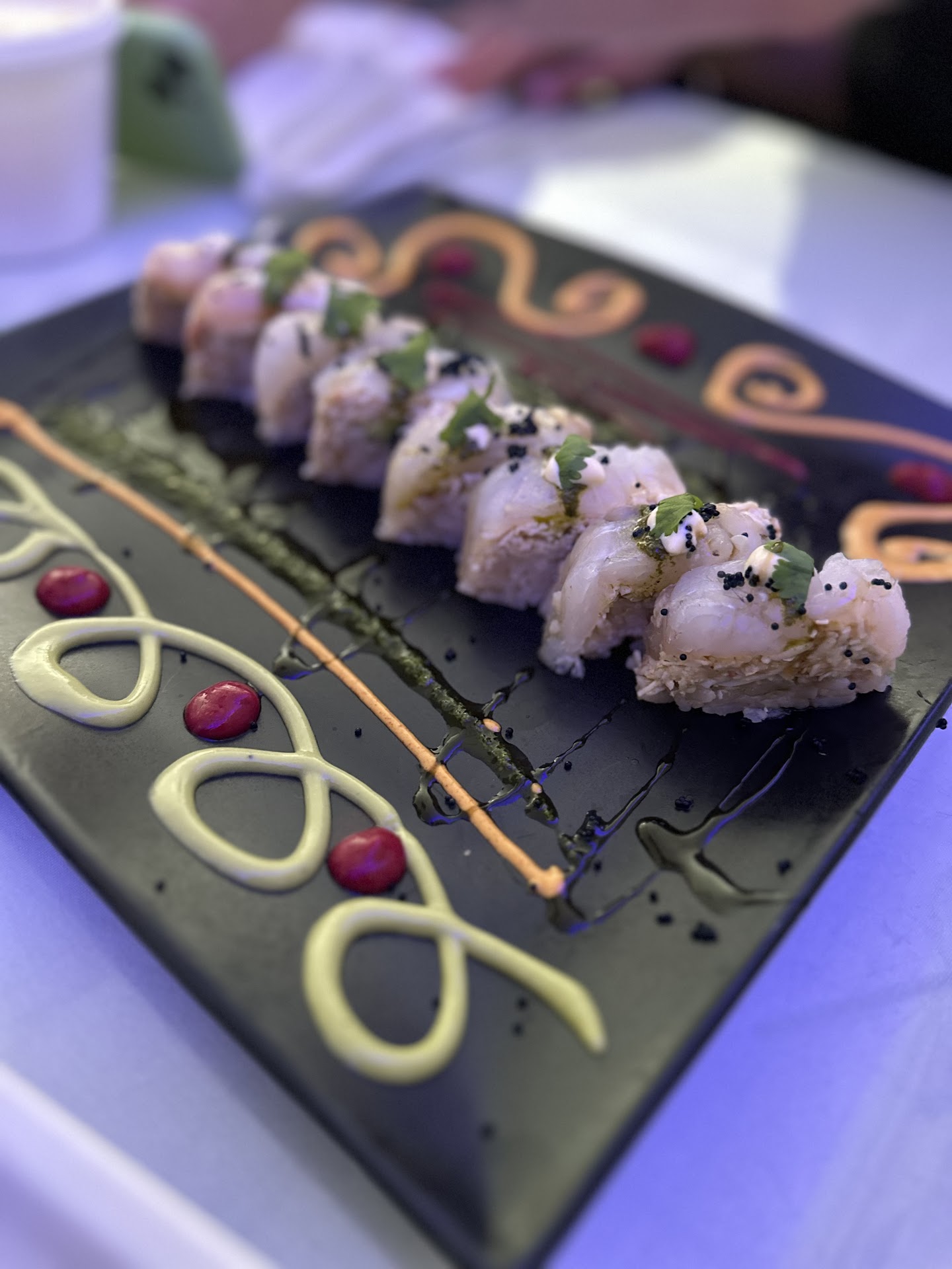 The "Garlic Albacore Kawari Sashimi" boasted a tasty plate consisting of seared albacore topped with garlic chips, chives, roasted ginger, dijon crab, and truffle soy sauce. The sinfully rich dijon crab-infused truffle sauce stole the show.