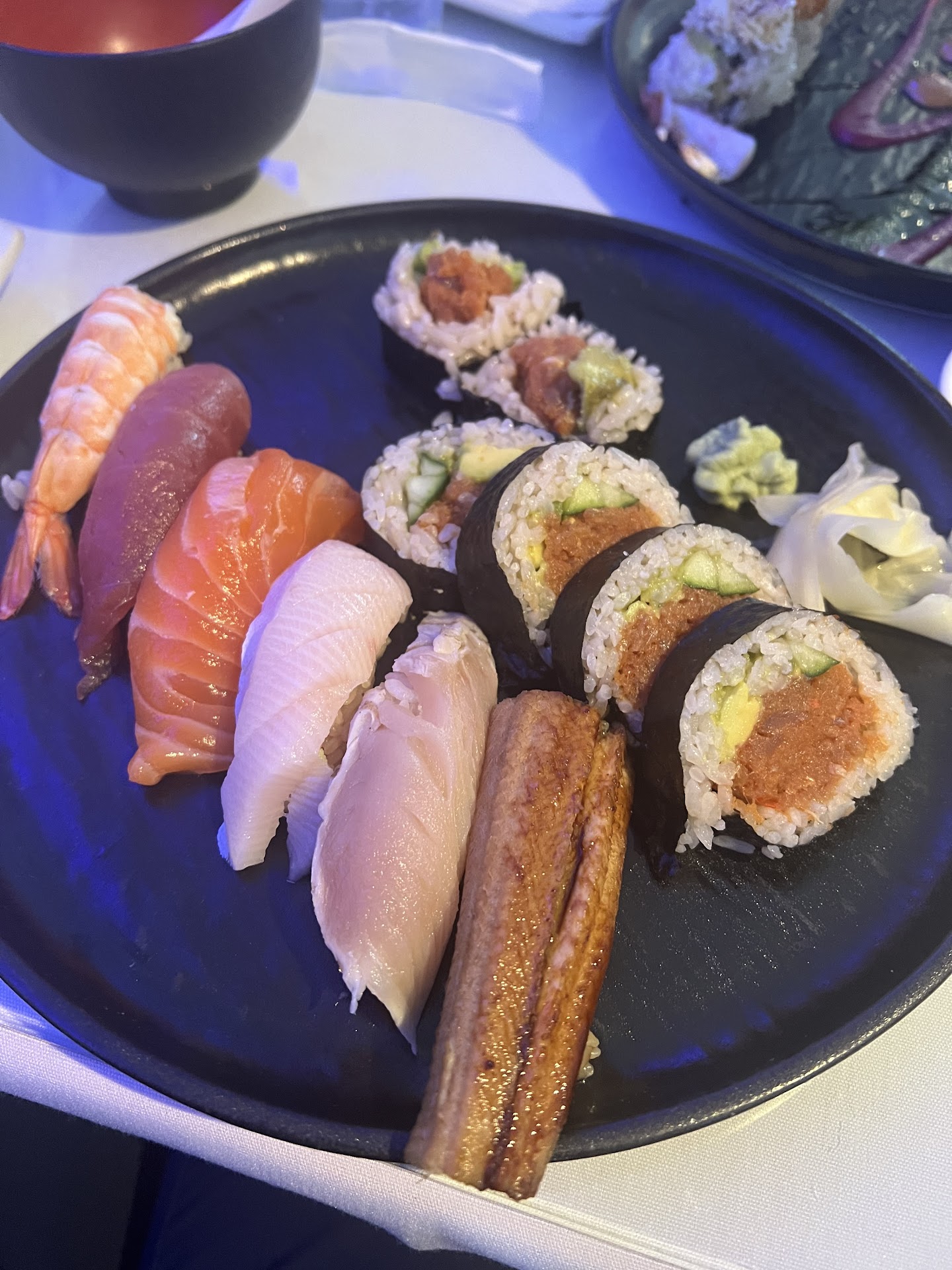 The California roll wasn’t made properly as it fell apart as soon as I picked it up. That shouldn’t happen at a sushi restaurant ever.