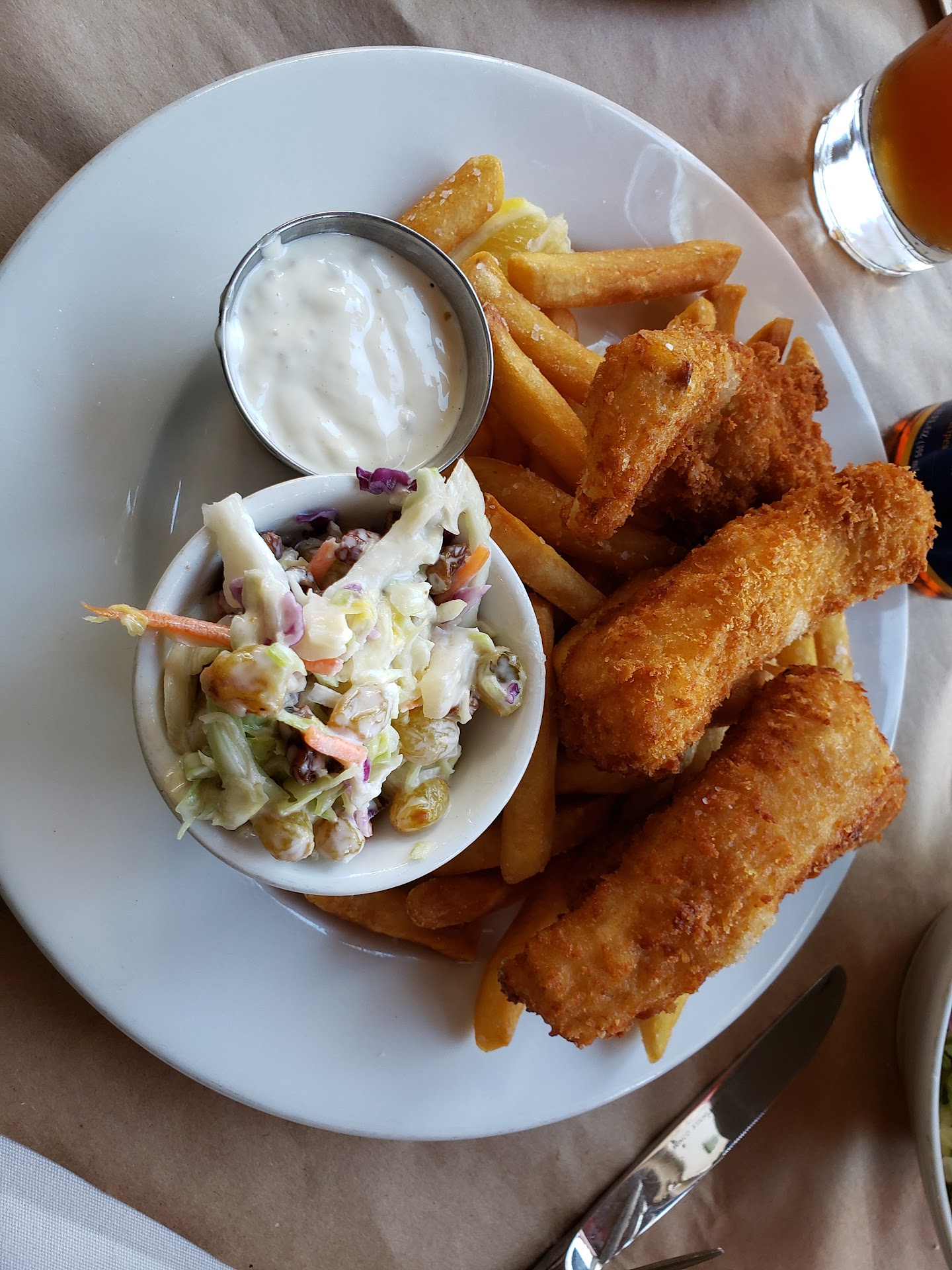 Now on to the fish and chips.... you'll be hard pressed to find a non-greasy fish and chips, but we found one here at the Santa Barbara FisHouse!!! Crispy, tender, and flavorful with a side of tartar sauce and malt vinegar on the side. The fries were typical but the coleslaw was unique. I usually enjoy a savory coleslaw instead of sweet, but this one was an exception. Raisins and pineapple bits sweetened the coleslaw but did not overpower it.