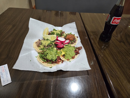 Read moreI had seen this taqueria before. Today I made the decision to stop and try their tacos, typical small double tortilla taco their sazon was OK, not perfect. I order 5 tacos 2 alpastor it wasn't bad nor good. 2 lengua tacos the meat seemed to be a combination of new and old. The other taco wasn't good at all. They have a self serve salsa bar with shop cilantro white onions rabanos and limes with 4 different salsas they are super spicy a little more than I would like it to be. They made me cry more than that unnamed woman who was unfaithful to me.
