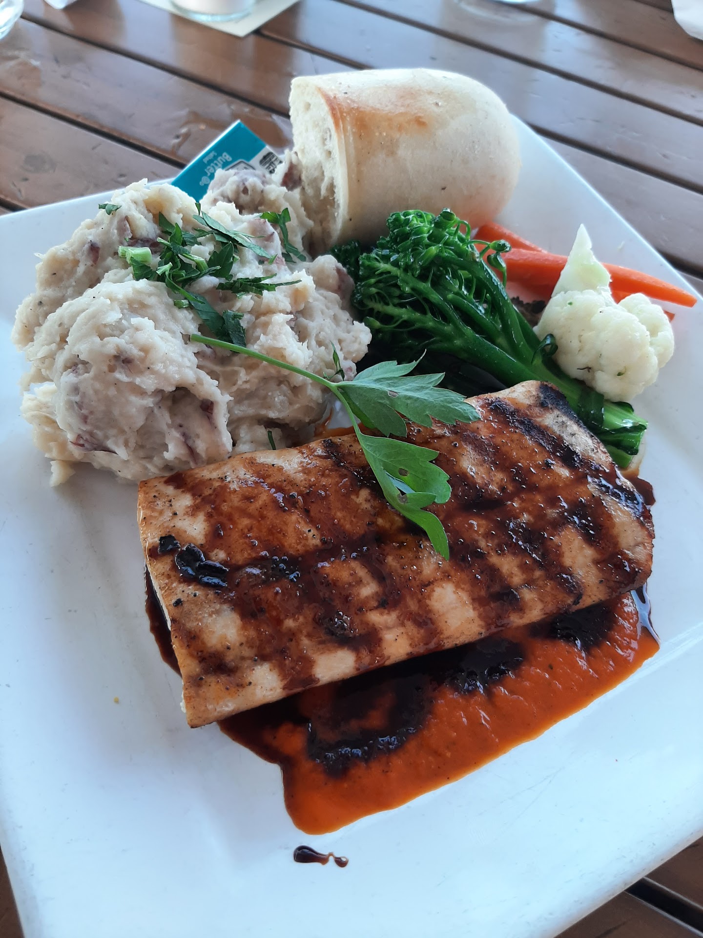 Read moreSIGH this place leaves a lot to be desired. The host stand outside is confusing so wasn’t sure if we waited there for someone, but after a minute we realized we needed to walk upstairs to be seated. I asked the person that seated us if normally someone was down there, they said it’s just meant for people to look at the menu (but there’s no signage indicating to head inside/go upstairs until you walk in the maritime museum and see the logo on the wall). I said that it was confusing and the person seating us replied “a lot of things here are confusing”. The restaurant isn’t well kept and the kitchen, which you pass when you go to the left rooftop dining area, is filthy. Our server was nice, fine all around. Ordered drinks. My drink I believed it was incorrect when it arrived to the table (ordered cucumber/gin cocktail, pretty sure I got a mojito based on appearance/taste). Brought this to the attention of our server and they took it away to have another made. When I got the new drink my husband was pretty certain it was the same cocktail but now a splash of cucumber and cucumber garnish but same flavor. I didn’t feel like fighting this further. Food was food in its basic definition. I am convinced that most if not all is frozen. My husband had the swordfish and I had the scallops, both tasted like they were frozen and not fresh. The veggies looked like they came from a frozen bag and bland, rice looked like ricearoni, potatoes might have been made fresh but bland. For the price scallops $42 and swordfish $27 OOF not justified. With the location they have, the access to fresh ingredients both from the harbor and farmers markets, etc. it’s sad that this is the product/experience delivered. Won’t...