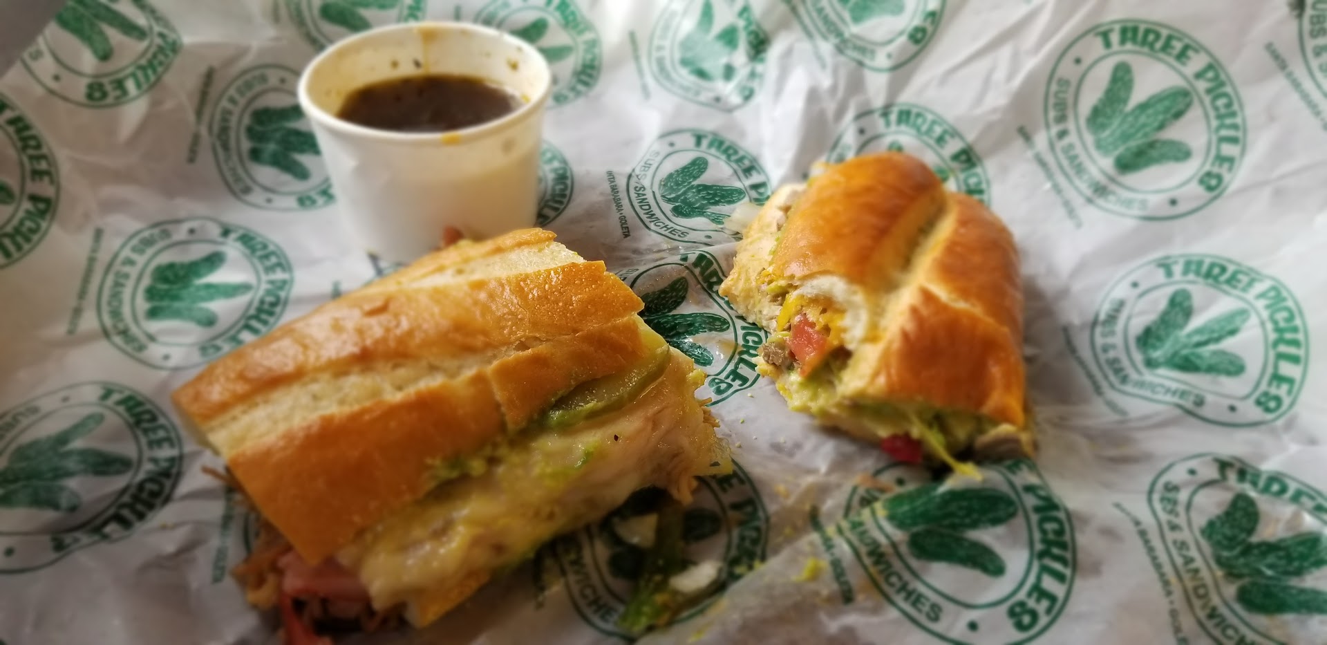Read moreFood is yummm. Atmosphere is fine. Most everything is decent but Customer service could be better. There's only one employee that isn't great. I see her ignoring people a lot and has ignored me. Only other complaint is that whenever I order food to go, they put pickles into a paper bowl and the lid has NEVER stayed on. The juice seeps thru the bowl and it leaks everywhere. EVERY TIME gaaaahhh!!! On top of that, they put it in a paper bag so it can leak thru the bottom and all your food falls out. I suggest less porous containers for pickles that clearly have a lot of juice or...