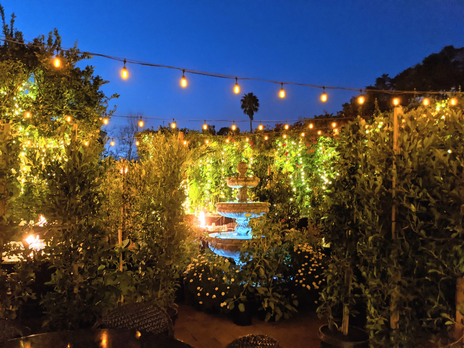 This is such a great spot for a celebratory dinner with friends or family. Parking can be inconvenient, so walk or take a rideshare if you can. Reserve ahead, especially if you have a bigger group or want to sit outside. The courtyard area is totally beautiful and spacious, with pretty fairy lights scattered among the plants and soft music playing in the background, sometimes live and sometimes not. Despite it looking crowded at first glance, the orientation of the fire pit/tables makes it quite spacious and easy to navigate.