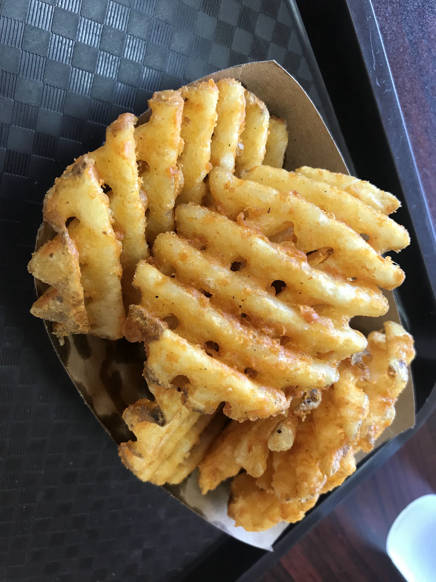 We also ordered some waffle fries (a bit expensive for $5), but they fry them fresh when you order too! PRO TIP: Dip your waffle fries in the hummus! Sounds strange... but it was strangely addicting.
