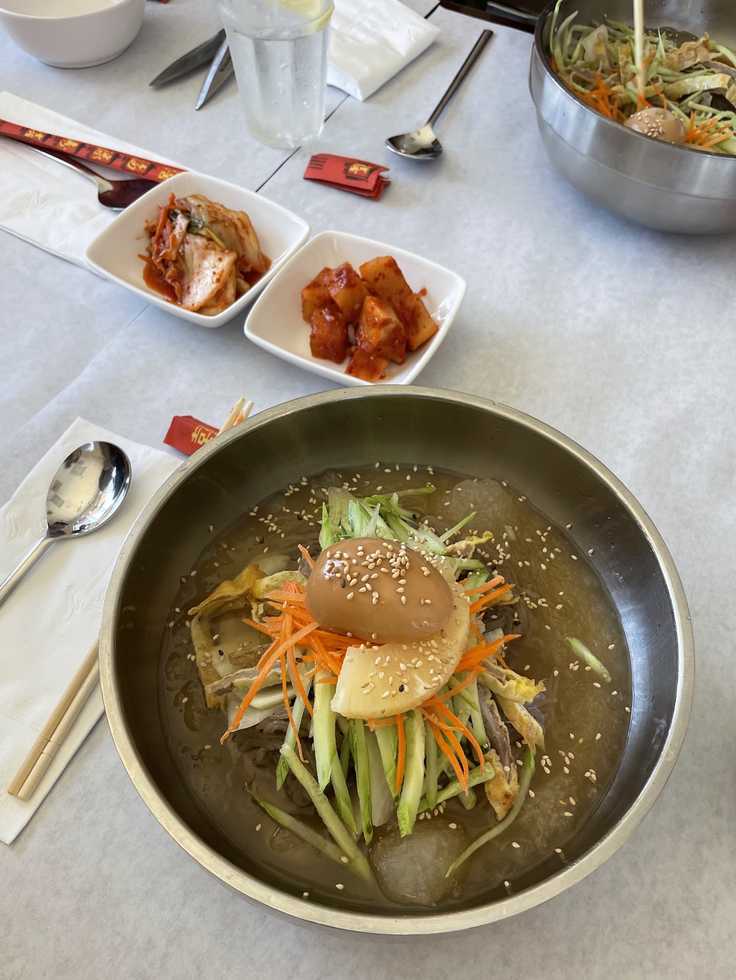 The Naengmyun is pretty delicious here! Keep in mind: they only have this on the menu during the summer! They don't add much broth, but there's a decent amount of slushy ice. I love that they layer the beef in egg! Pretty unique and adds nice texture. Interesting that they add...