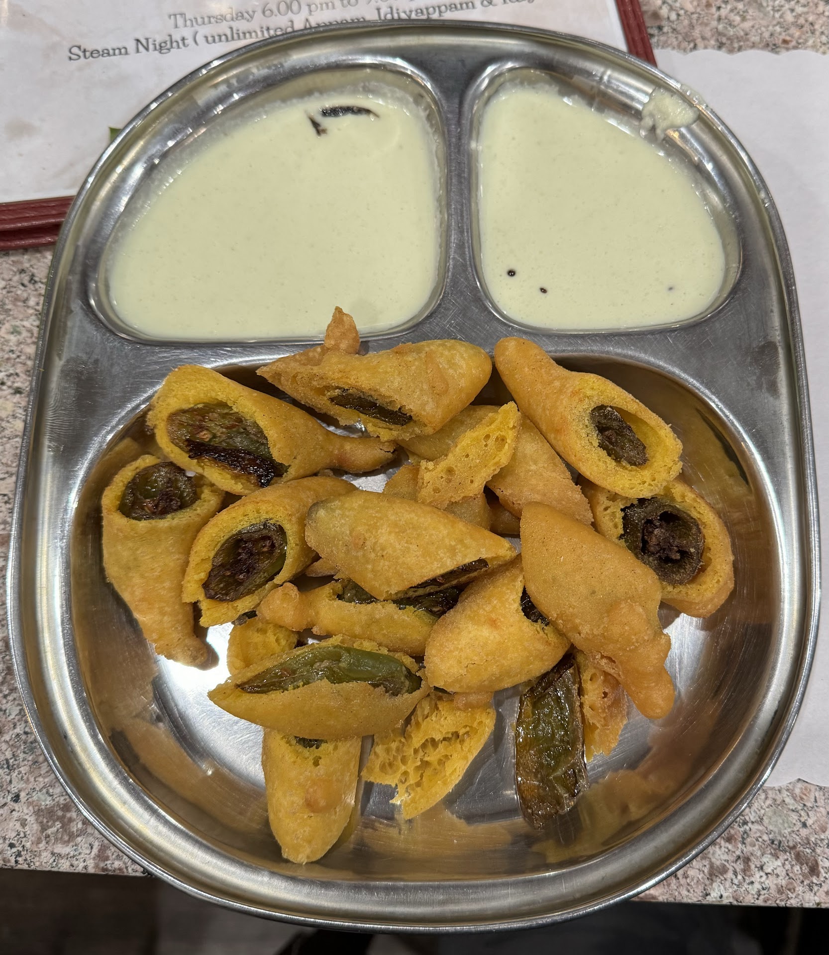 The coconut chutney and sambar were delicious and the saving grace of the meal. You get serve yourself from the station set up next to live dosa. Sambar is vessel that stays warm which is awesome.