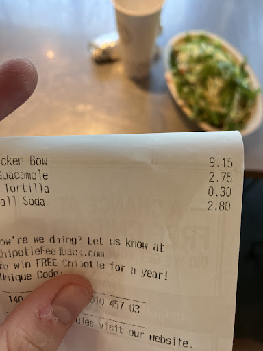 The food is fine and no chipotle near by. So, I may go back and order. But, every time I am going to check it right there. This is another reason, why i go and pickup rather than ordering on Uber eats or similar service.