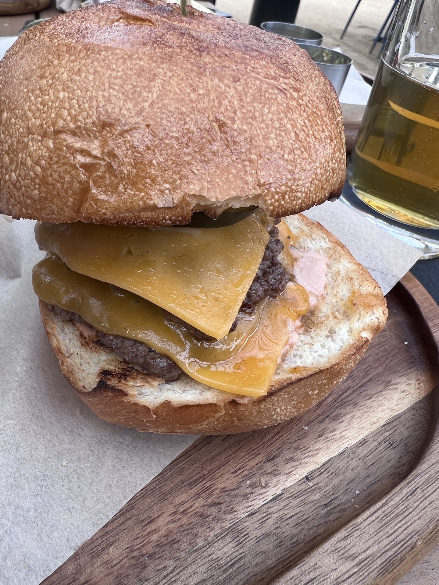 Ā Ā Ā Read moreI held high hopes for an emergence of what promised to be an upscale beer garden in our cozy neighborhood, but so far the only upscale thing about the place are prices. Their best shot at burger, a $22 "whole nine yard" (or $27 with taxes and tips), is a fairly decent 1/2lb patty entirely ruined by an undersized, supermarket-grade potato bun that soaked instantly and totally disintegrated upon second bite, making me feel nostalgic for Carl's Jr that occupied this very site a few years ago. And yet I felt lucky I didn't go for a $18 "smashburger" I could spot on a table next to me, that looked straight as an insult. A $10 beer came in a plastic glass, making me wonder if they also acquired some of Carl's Jr inventory. The menu also offered a BBQ fare, but I failed to spot a smoker anywhere in the vicinity. The service was fine -- at least the waiters did their best, although make sure to ask for the paper menu right away -- they want you to order online via Toast, which usually works fine, but in this case the online version of the menu misses most descriptions for food items and entirely omits all beers. The atmosphere, I'm sure, will be fine, once they start attracting more customers, which, with the current state of affairs in the gastronomic department, I can only imagine happening...