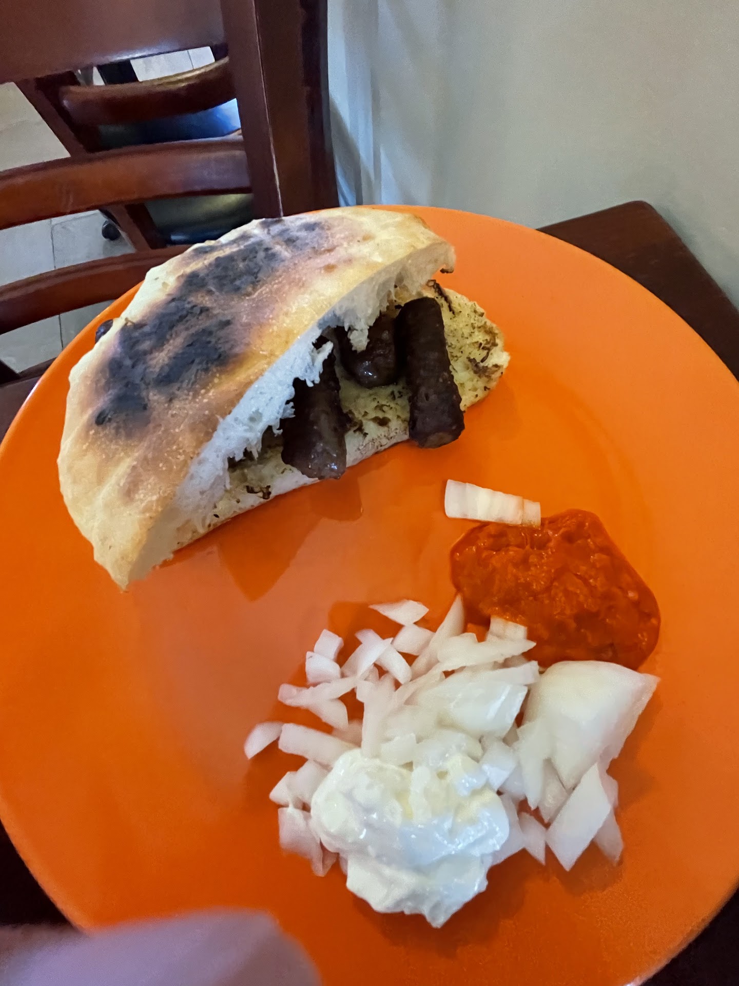 The first time we got here I wanted to order Burek and Čevapčiči. They didn't have Burek, so I had a portion of Čevapčiči and was satisfied. They didn't have Kajmak (type of cheese) to go with the meat (you'll get it in any place that makes Čevapčiči in Europe and it's not hard to make it at home), but I thought okay, maybe they ran out, so I had Ajvar instead (Yogurt/Sour Cream only goes well with Burek, not with Čevpačiči in my opinion). Meat was well prepared and tasty, so was the Lepinja bread that comes with it. No complaints there.