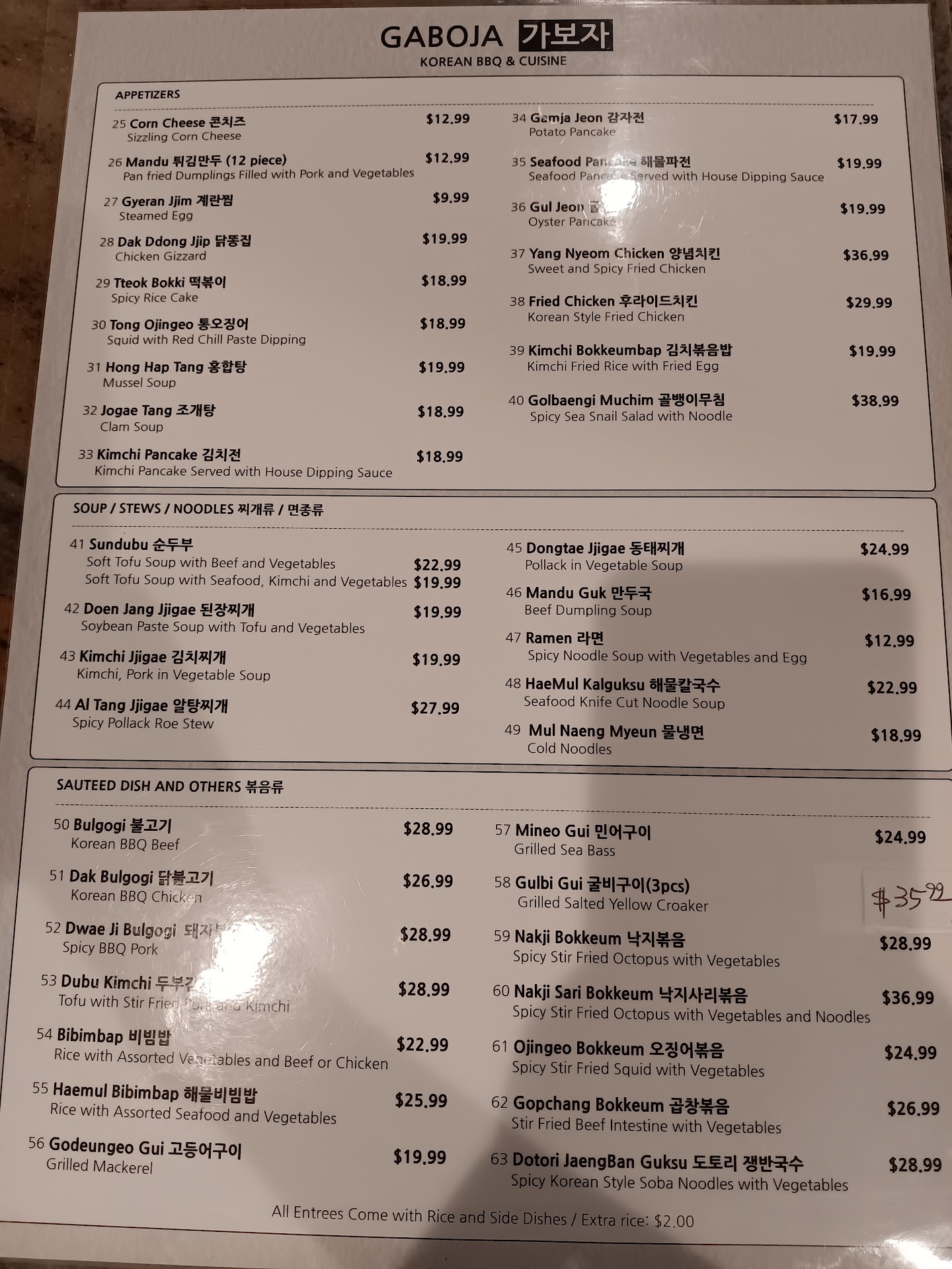 Ā Ā Ā Read moreWhen you first walk in, it smells like cigarettes instead of food. Then you sit down and notice there is no music in the restaurant. We take a look at the menu and the prices are ridiculously high compared to the photos on Google Maps. The servings were small and overpriced. Three people at our table have severe allergies and our server insisted that they were safe. One person at our table was not using the dipping sauce because he wasn't sure if it contained fish sauce. The server grabbed his food off his plate, dipped it into the sauce and put it back on his plate which I found wildly inappropriate. After we left the restaurant he ended up in an ambulance and went to the emergency room. There are so many other Korean BBQ restaurants in the area that you could go to instead. You do not want to waste your money eating overpriced mediocre food with subpar service at Gaboja. I honestly wish we left and ate somewhere else after...