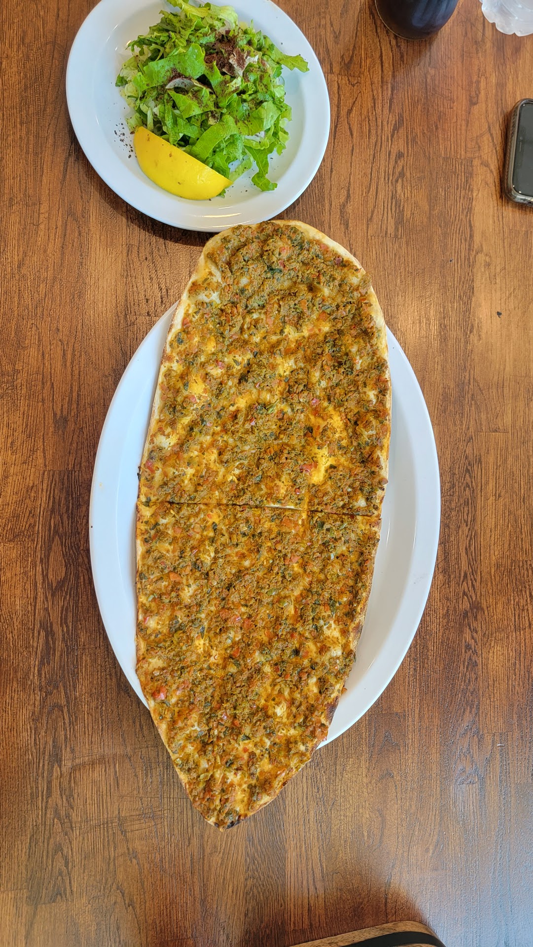 Lahmacun. Yes, it is tasty and has good ingredients and is fresh. Though, I ask them to make it crispy (not soft). I do not think, in Türkiye, Lahmacun comes w green salad. At this place it comes w that, and i think that is good.