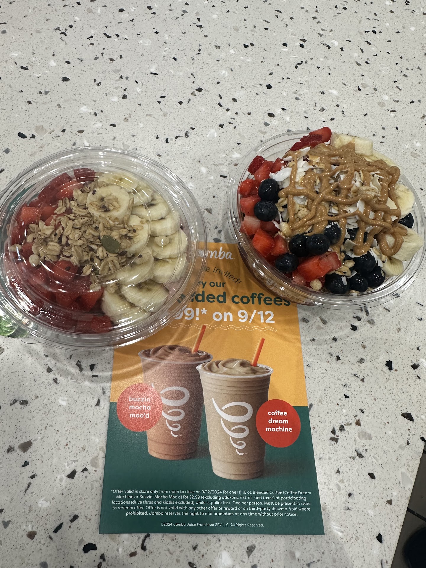 Ā Ā Ā Read moreA wonderful Jamba experience courtesy of Marisa! The location of this store is really convenient. The parking lot is easy to navigate, scoot in and hop out, once you have visited your destination. This store was super clean and had fun, upbeat music that was at just the right volume. I was happy to see that this store carried the Turkey Sausage Breakfast wrap. Mine was so delicious and thoroughly cooked all the way through. Ordering my drink was super easy too! I always order a "Citrus Squeeze," which is no longer on the menu. This order causes a little confusion in some stores, but not today. My order was taken quickly and I was even offered a boost (just like I used to receive from Jambas many years ago!) Great service and wonderful tasty purchases made for an...