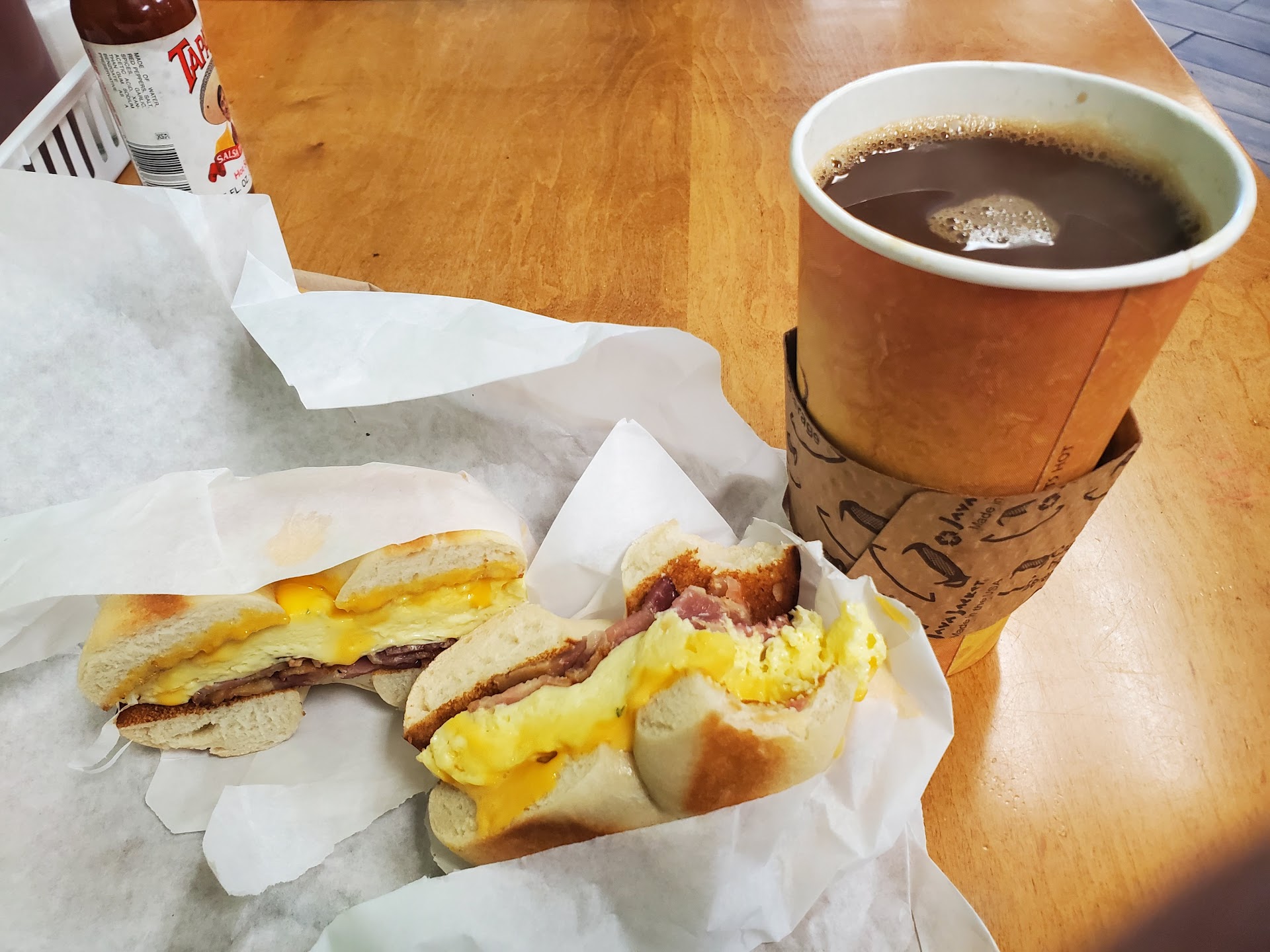 Read moreThis place quickly became one of my new favorite spots! The bagels with cream cheese and the regular sandwiches are super messy, and I do wish they would cut the bagels all the way through, but they are absolutely delicious. The coconut smoothie was good too-refreshing and not overly sweet. I look forward to trying their other flavors. It's also worth a mention that the employees (one of which may be the owner?) are just the friendliest people-I always leave with a smile...