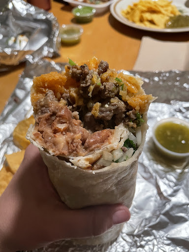 The regular carne asada burrito was pretty good. The meat had a good texture, but overall the burrito was pretty soft and squishy. The last four bites were only rice. The burrito itself is on the spicier side of mild. The verde salsa is truly mild. For the price, it wasn't that impressive.